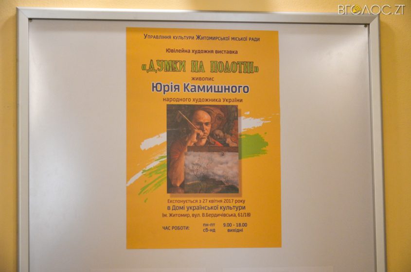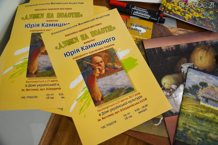 У Домі української культури у Житомирі 27 квітня відкрили ювілейну виставку народного художника Юрія Камишного – “Думки на полотні”.