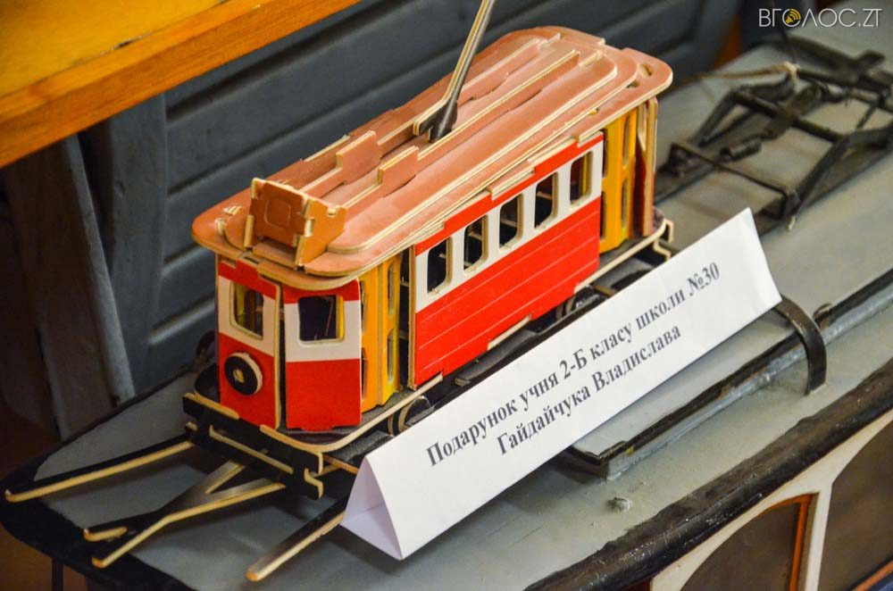 Головний сучасний експонат – макет трамваю, зроблений учнем школи № 30 та каска з Майдану.