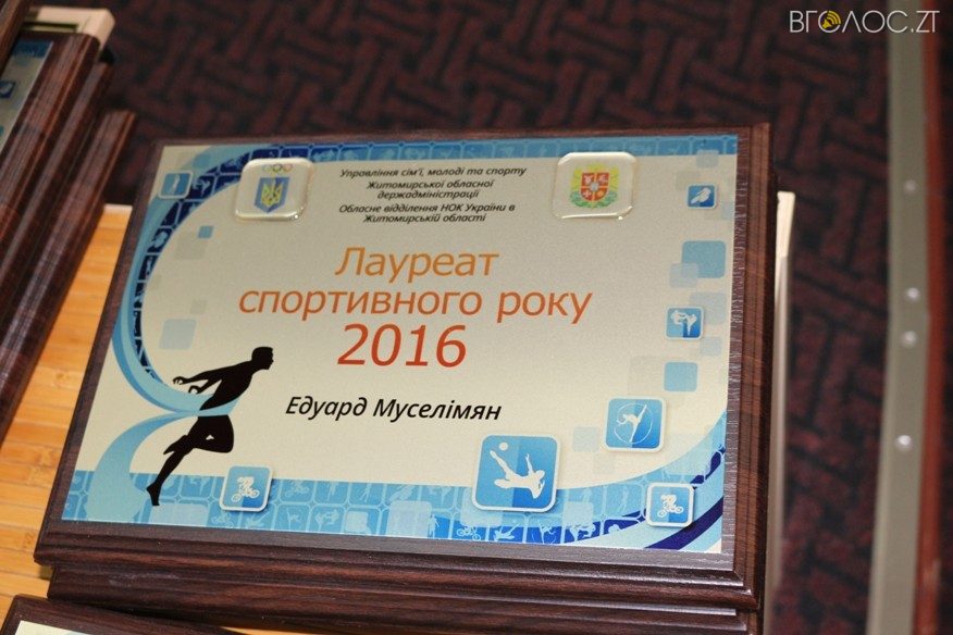 У Житомирі 27 грудня підбили підсумки 2016 спортивного року та нагородили кращих спортсменів та їхніх тренерів за успішні виступи. Нагороди також отримали спортивні журналісти. Кращих лауреатів визначали у кількох номінаціях, зокрема «Кращий спортсмен року з олімпійських видів спорту», «Кращий тренер з олімпійських видів спорту», «Кращий тренер з неолімпійських видів спорту», «Найкраще спортивне місто» тощо.