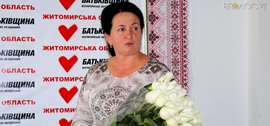 Голова Житомирської обласної партійної організації ВО «Батьківщина» Анжеліка Лабунська представила активу Житомира нового керівника міської організації. Ним стала депутат Житомирської міськради Любов Цимбалюк.