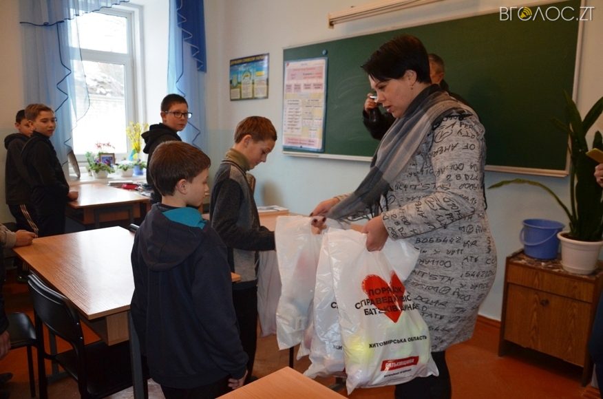 Голова фракції ВО «Батьківщина» у Житомирській міській раді Любов Цимбалюк передала подарунки вихованцям КНЗ «Житомирська спеціальна загальноосвітня школа-інтернат». Хлопчики та дівчатка отримали пакети з набором подарунків до новорічно-різдвяних свят.