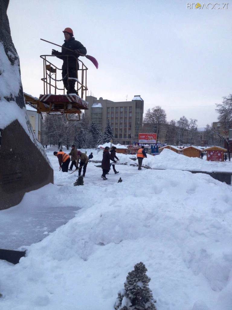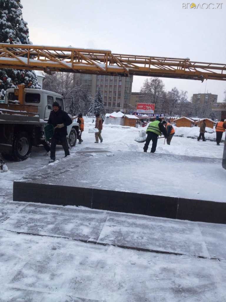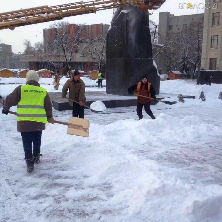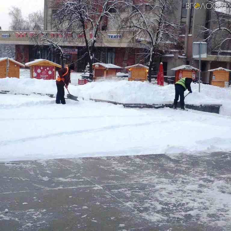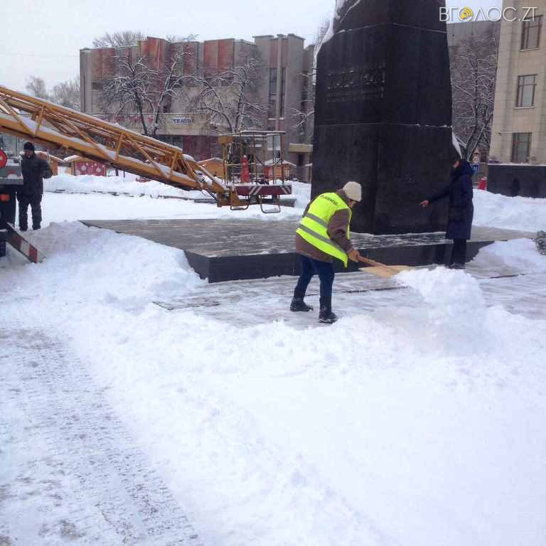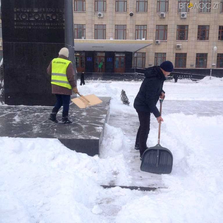 З самого ранку 12 січня на майдані Корольова працюють комунальники. Відповідно до планів обласної влади, о 10:00 тут відбудеться урочисте покладання квітів з нагоди 110-ї річниці від дня народження Сергія Павловича Корольова. А майдан за кілька годин до цього – замело снігом. Тому сніг прибирають усі дружно, щоб встигнути. Читачі “Вголос.zt” надіслали у редакцію фотографії.