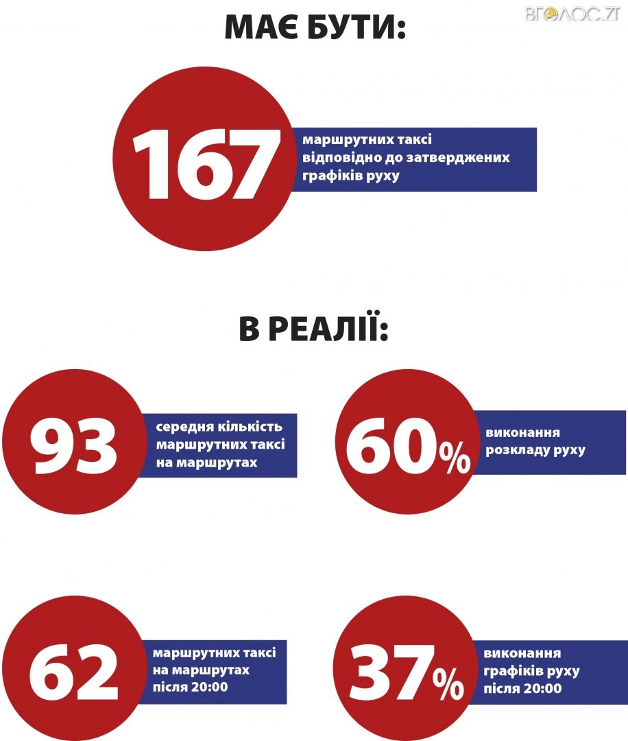 Якщо до цього додати те, що в салонах маршрутних таксі під ногами пасажирів лежать колеса, під час дощу вода біжить з даху, салон брудний, а водій може палити в салоні і одночасно розмовляти по телефону, постає досить логічне запитання – чому житомиряни мають утримувати чиновників, які закривають на це очі, чи вони утримуються не лише з коштів платників податків?