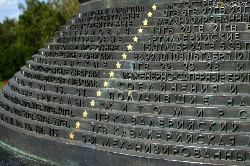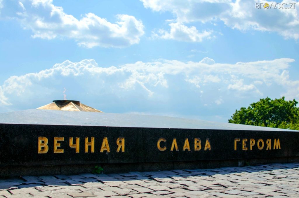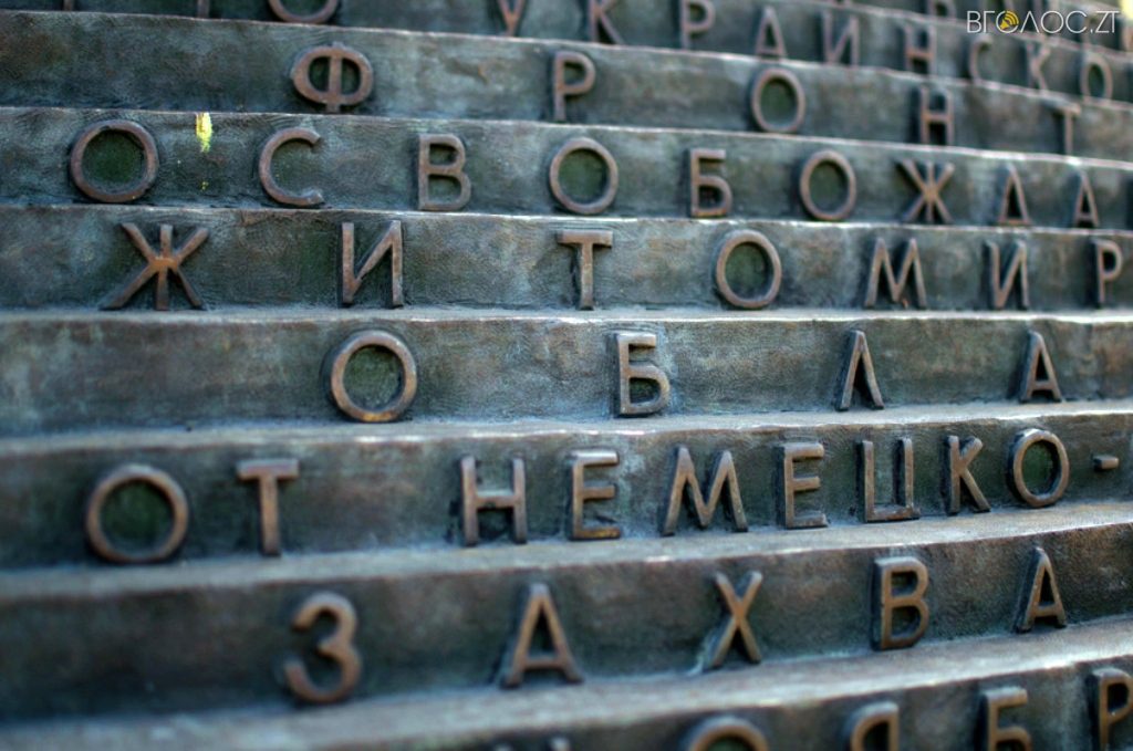 Монумент Вічної Слави на честь «воїнів-визволителів, партизан та підпільників» у Житомирі відкрили 38 років тому на одній з найвищих точок міста. Тут знаходиться 37-метрова колона з лабрадориту, на якій встановлена скульптурна композиція. А на гранітному постаменті викарбувані назви частин, партизанських з’єднань і загонів, підпільних організацій, прізвища воєначальників, партизанських командирів, керівників партійного підпілля. Поруч з монументом завжди горить Вічний вогонь. А вдовж алеї, яка веде до монумента, знаходяться гармати часів минулої війни.