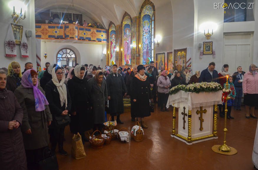Всю ніч 16 квітня у храмах Житомира тривали богослужіння. Так віряни святкували Світле Христове Воскресіння. У Свято-Михайлівському кафедральному соборі та навколо нього зібралися сотні містян. Богослужіння завершилося освяченням Великодніх “кошиків”. Як святили паску та крашанки – бачив “Вголос.zt”.