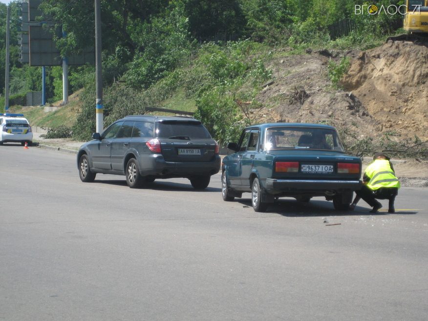 Поряд зі схилом неподалік моста через річку Тетерів на вулиці Жуйка трапилася аварія. Автомобіль «Лада» врізався у «Subaru».