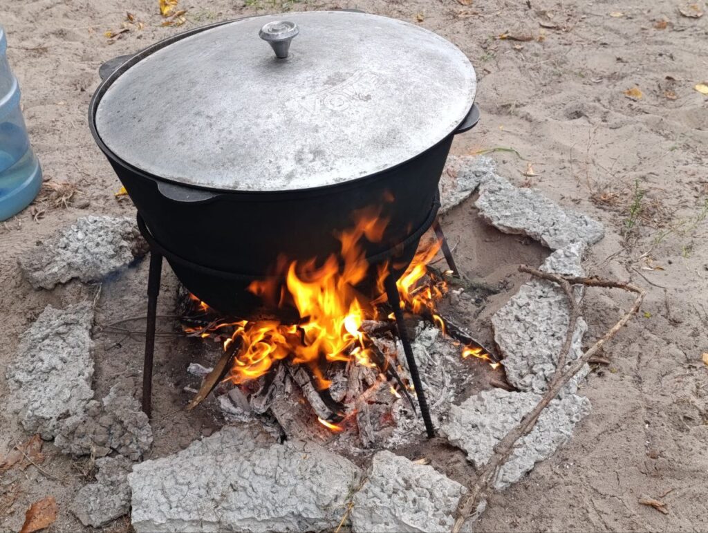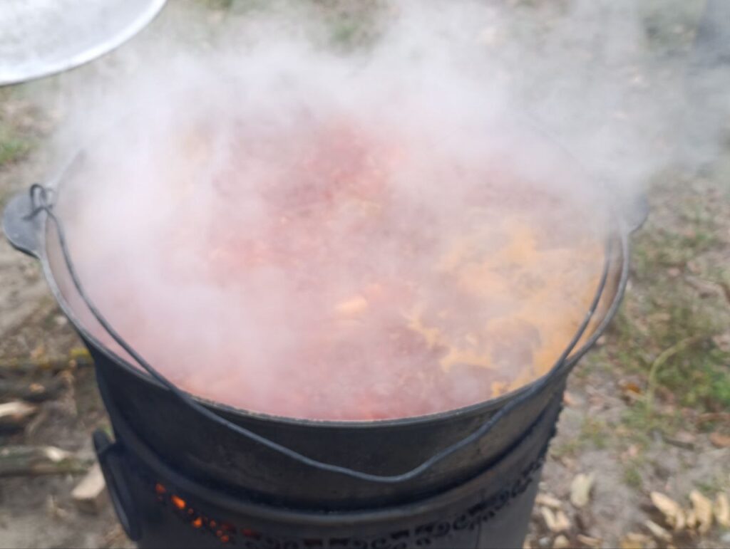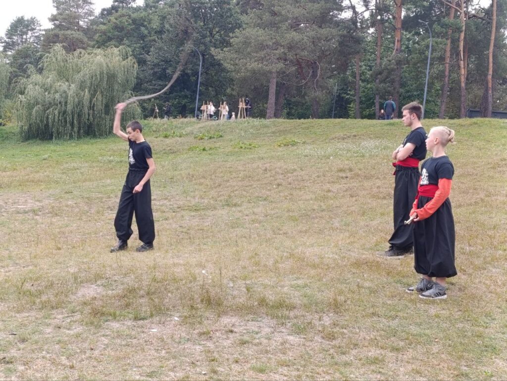Козаки влаштували показовий бій на шаблях і зварили червоний борщ з кулешем. Охочі мали змогу задонатити на підтримку ЗСУ та посмакувати солодощами.