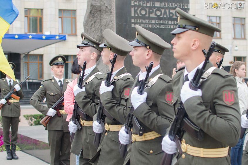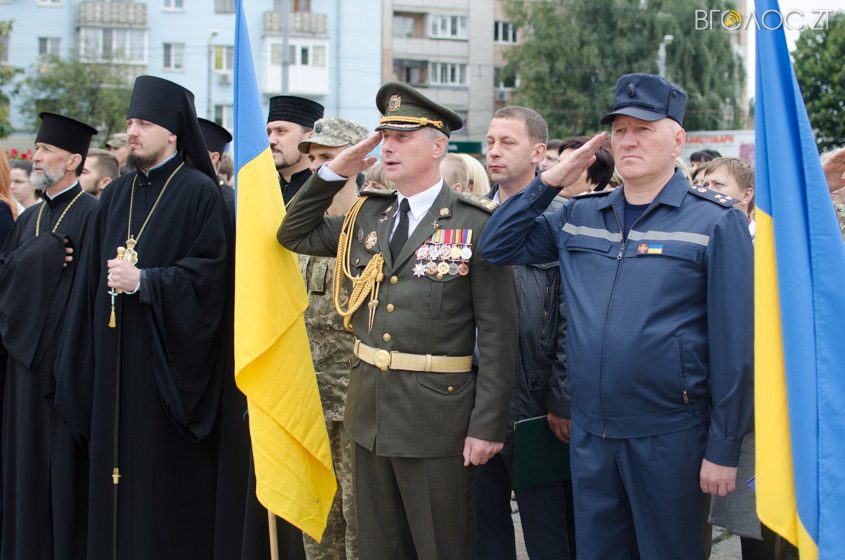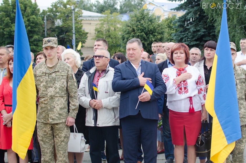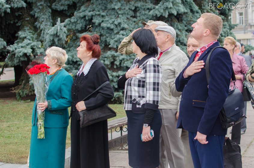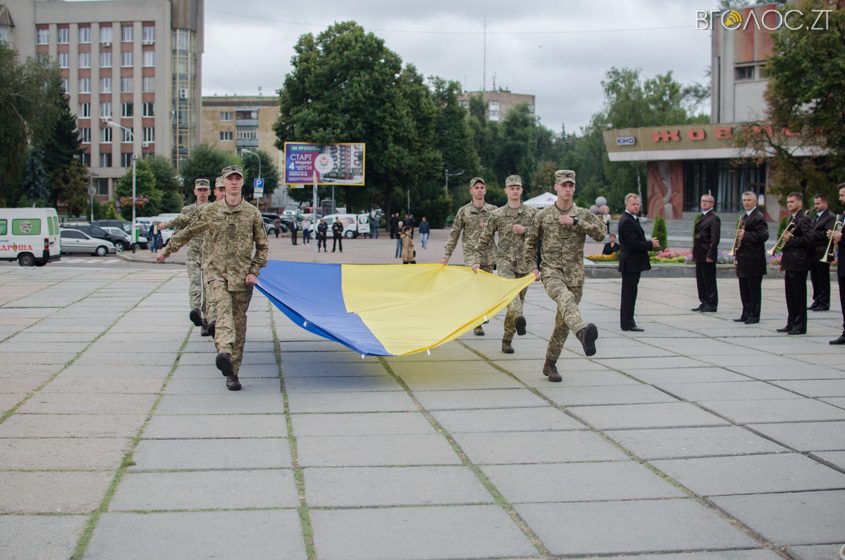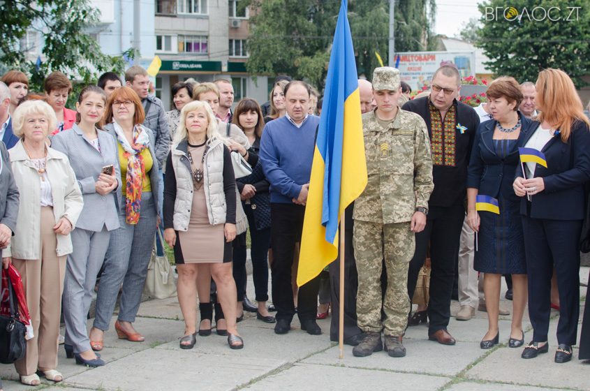 У Житомирі на майдані С.П. Корольова 23 серпня відбулася офіційна церемонія підняття Державного Прапора України. У заході взяли участь більше сотні людей – представники громадськості, правоохоронних органів, керівництво міста та області.