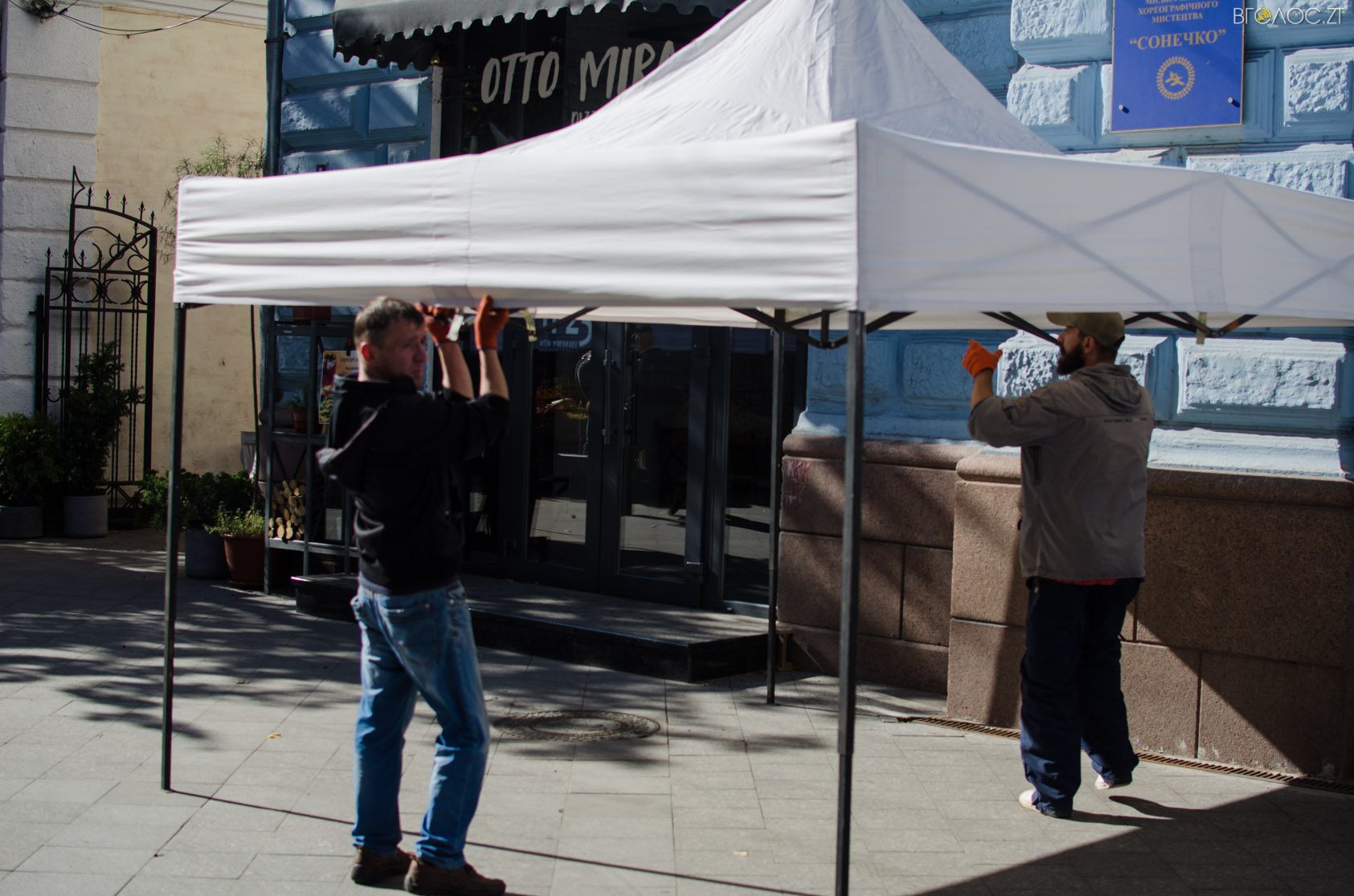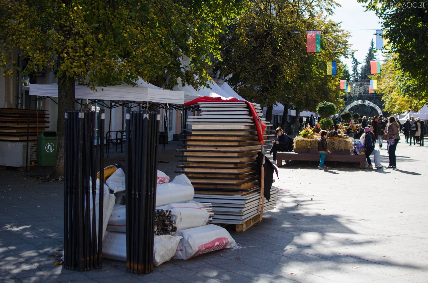 У Житомирі на вулиці Михайлівській розпочали підготовку до ярмарку, який проходитиме 3-4 жовтня. Участь у ньому мають взяти 62 виробники, з яких 21 — з Республіки Білорусь.