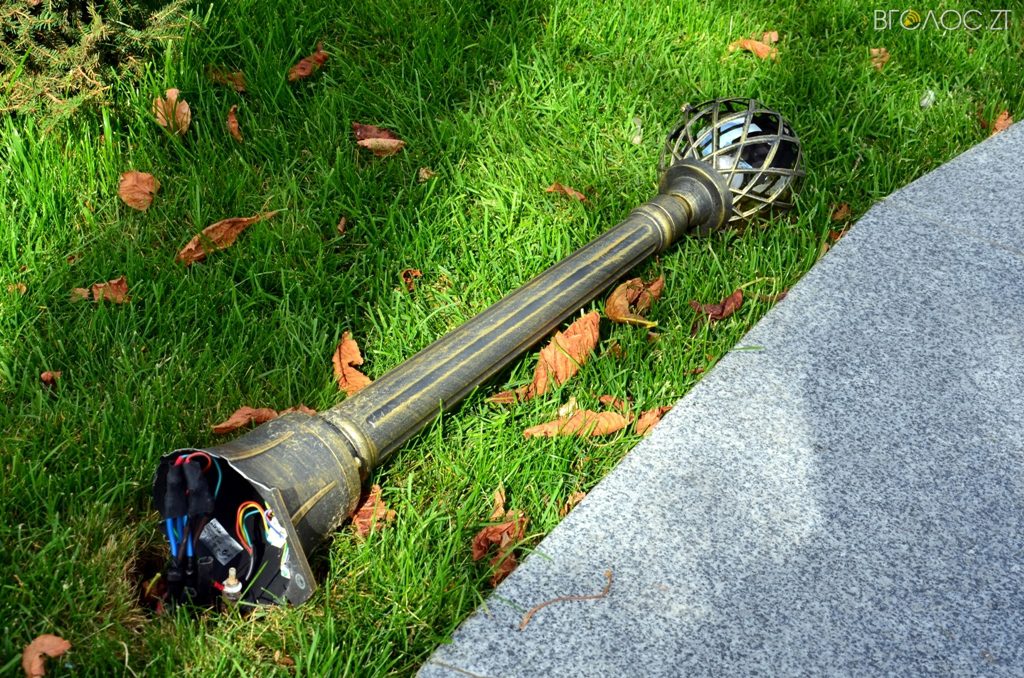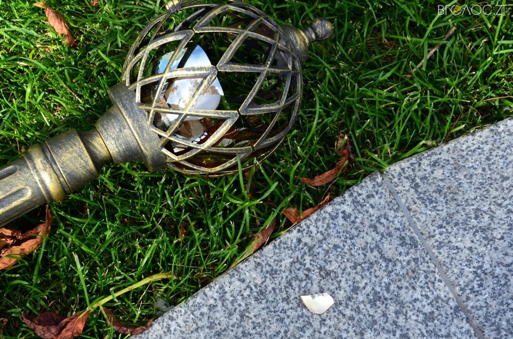 У сквері імені Ольжича, на якому нещодавно завершили реконструкцію, невідомі особи побили ліхтарі.
