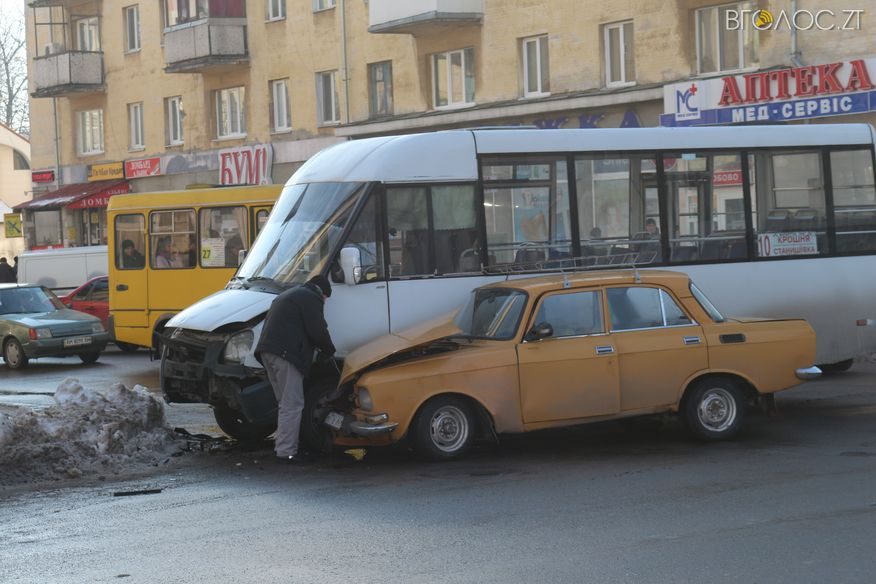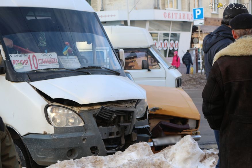 Машрутне таксі №10 сполученням “Крошня-Станишівка” зіштовхнулося із автомобілем “Москвич” на перехресті вулиць Київської та Хлібної 16 січня близько 13:00. Про це “Вголос.Zt” повідомили читачі.