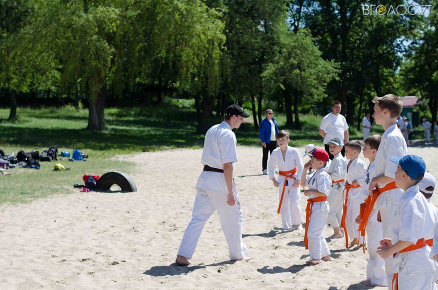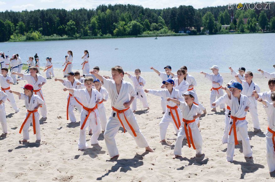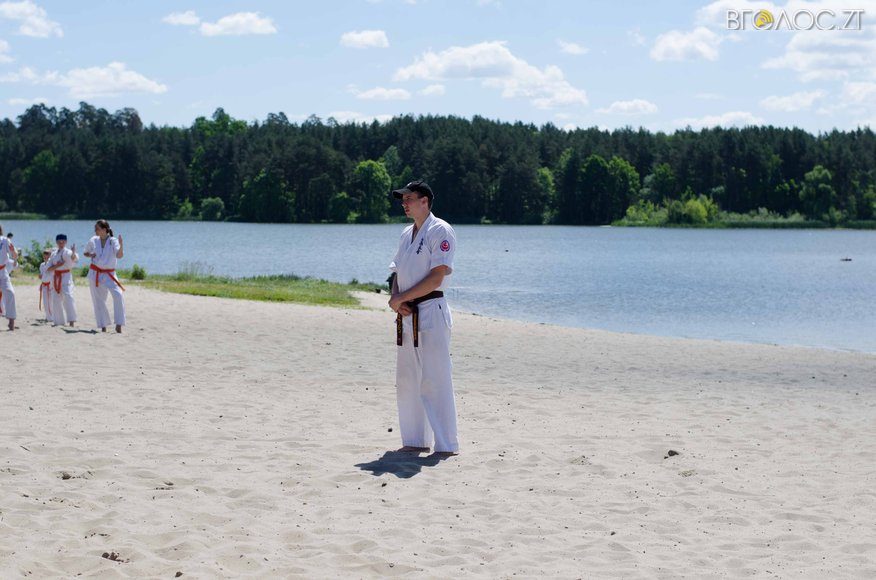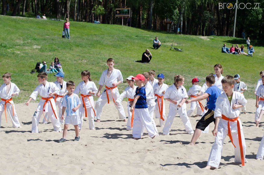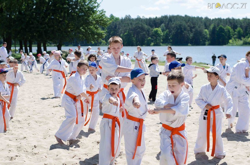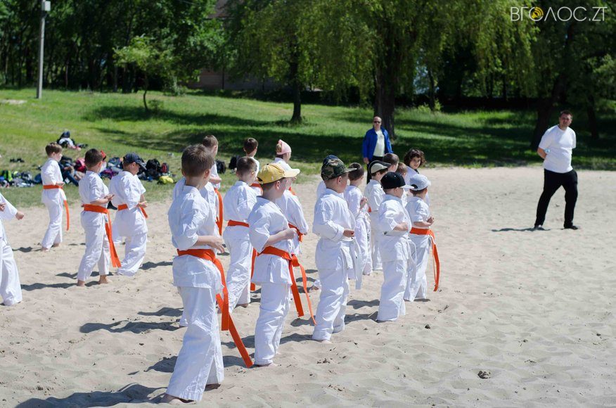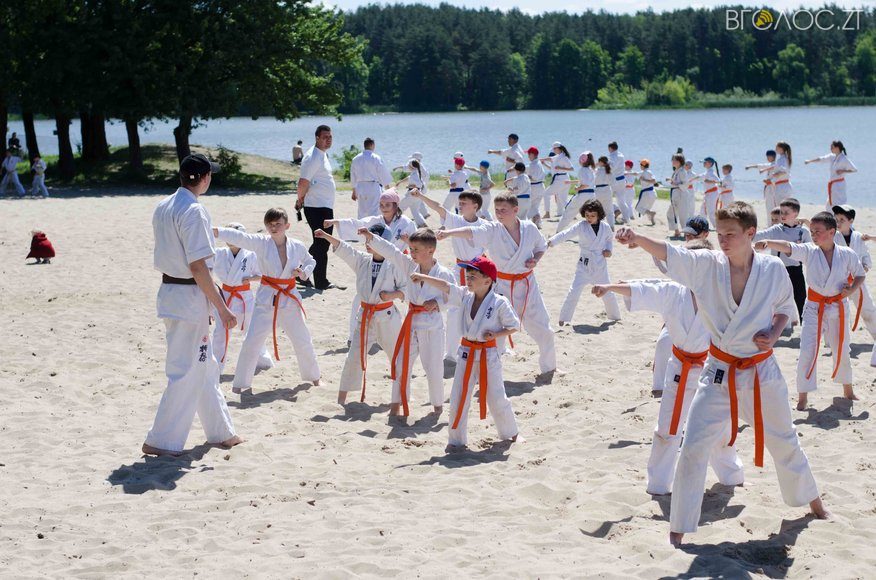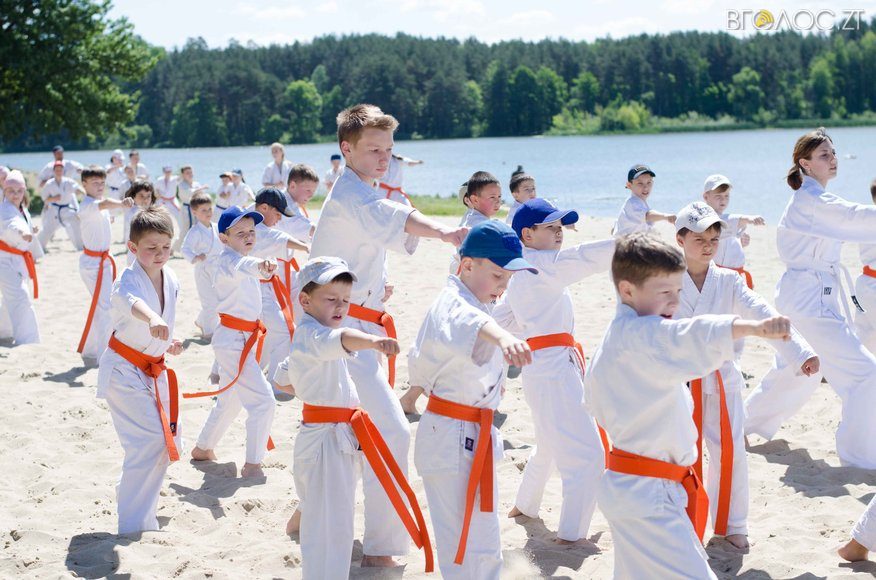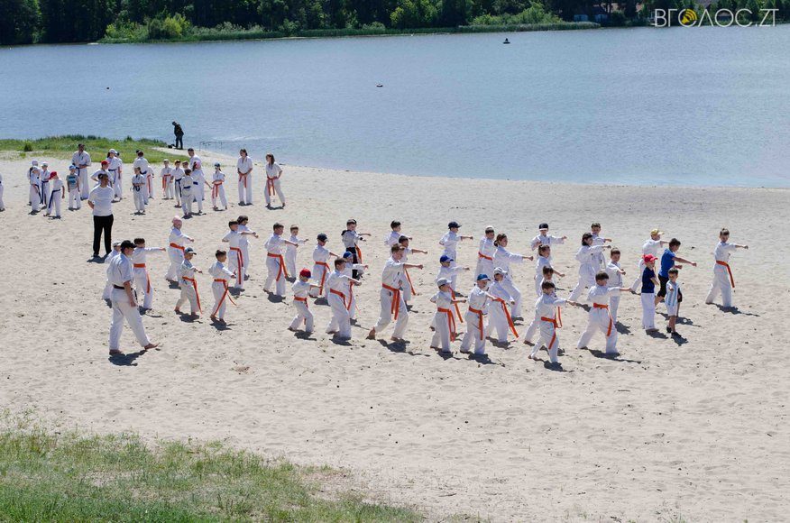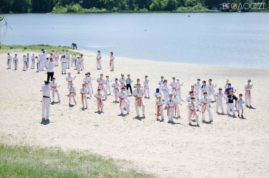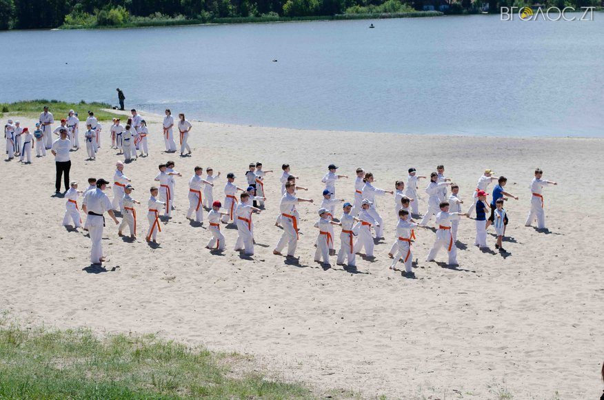 У той час, як на доріжках гідропарку 3 червня тривала «Дивогонка» — на пляжі відбулася спеціальна «зарядка» за програмою Спеціальної Олімпіади до Міжнародного дня захисту дітей. Свої вміння, зокрема, продемонстрували юні каратисти.