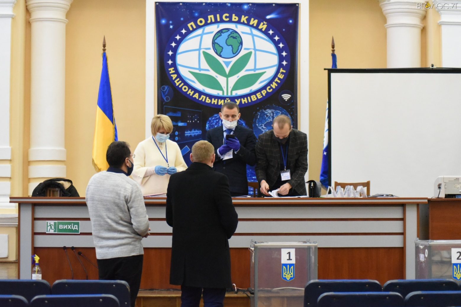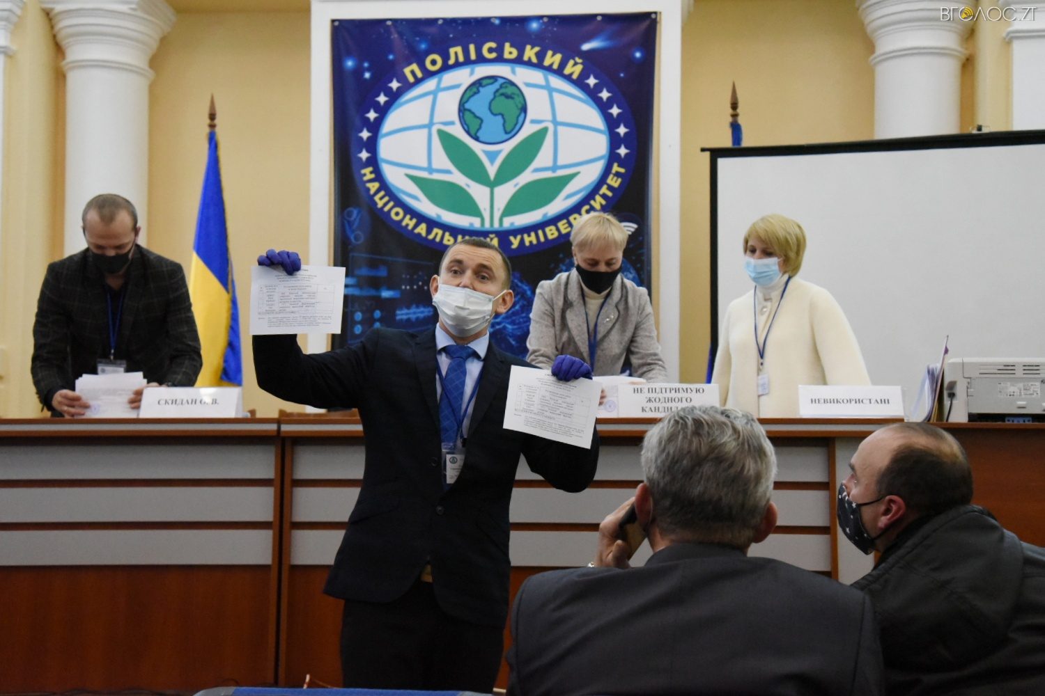 У Поліському національному університеті 11 грудня відбулися вибори ректора. Відповідно до результатів голосування, перемогу здобув діючий ректор університету, доктор економічних наук, професор Олег Скидан. Про це повідомила пресслужба Поліського національного університету. Єдиним конкурентом Олега Скидана на виборах став доктор біологічних наук, професор, академік Юрій Довгій.