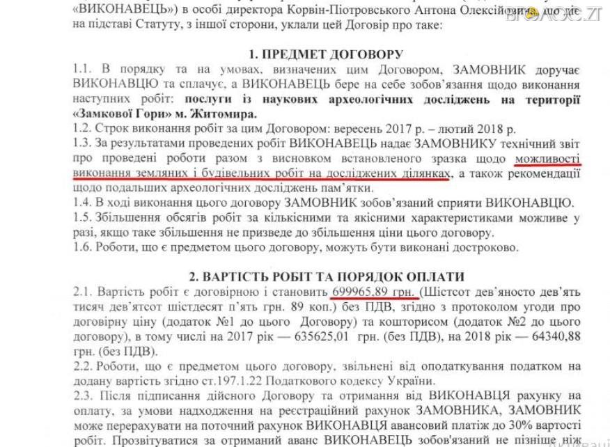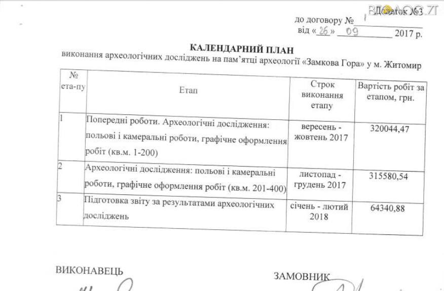 Відповідний договір департамент містобудування та земельних відносин Житомирської міської ради та державне підприємство “Науково-дослідний центр “Охоронна археологічна служба України” Інституту археології НАН України уклали 26 вересня.