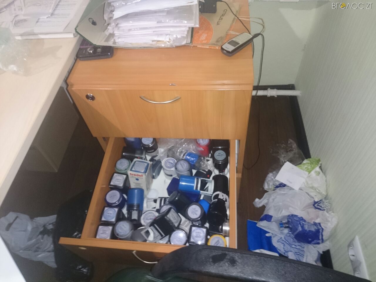 Правоохоронці 25 січня провели санкціоновані обшуки у місцях здійснення незаконної фінансово-господарської діяльності, організованої у містах Житомир та Київ. Під час обшуків виявили та вилучили 50 печаток підприємств з ознаками фіктивності, кліше, комп’ютерну техніку, електронні ключі, бухгалтерську документацію та чорнові записи.
