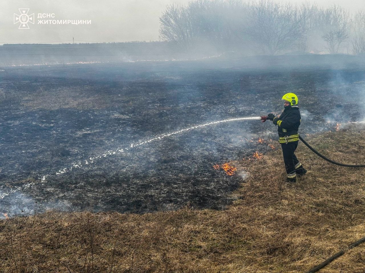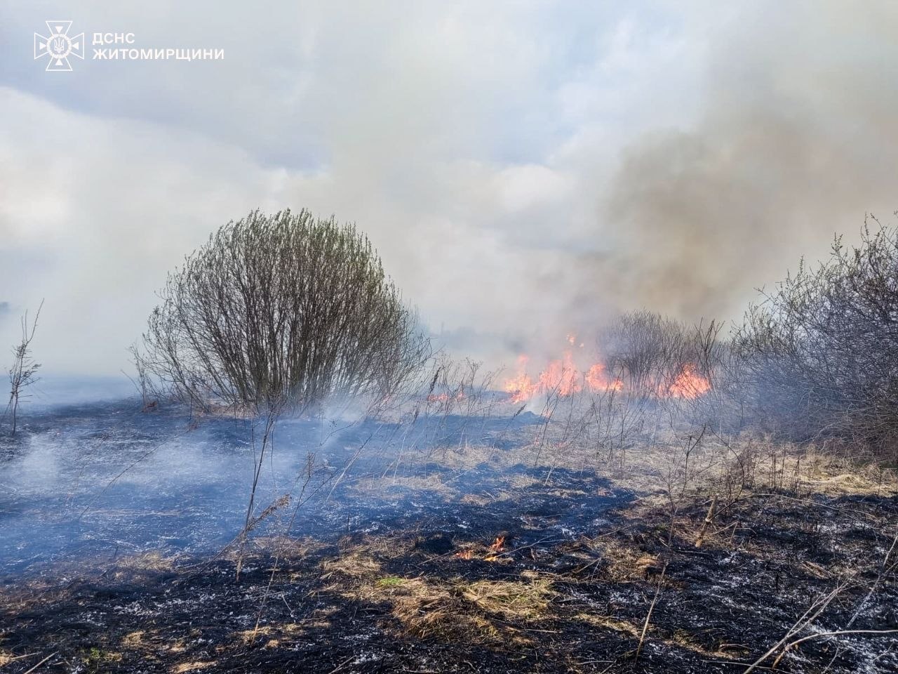 Близько опівдня поблизу селища Брусилів загорілася суха трава та чагарники. Через вітряну погоду полум’я швидко поширилося на площу близько 1 гектара. До ліквідації пожежі разом із вогнеборцями долучилися небайдужі місцеві жителі.