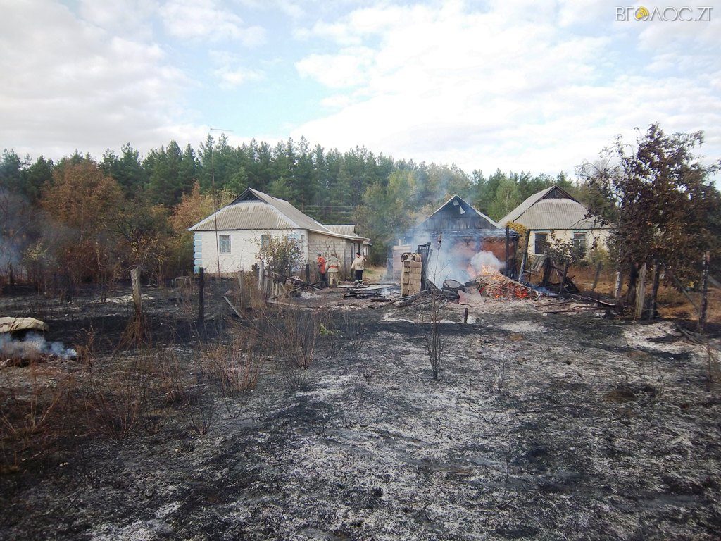 “Об 14:15 до Служби порятунку «101» надійшло повідомлення про загоряння низки будівель на території декількох дерев’яних дачних приватних домогосподарств. На місці події бійці ДСНС встановили, що внаслідок спалювання сухої рослинності місцевим жителем пожежа розповсюдилася на чотири господарські споруди та два дачні житлові будинки, що розташовані на території п’яти сусідніх приватних домоволодінь. Зважаючи на те, що в них тривалий час ніхто не проживає, територія зазначених господарств повністю заросла травою. Загальна площа пожежі становила близько 1,5 га. Оцінивши обстановку, керівник гасіння пожежі прийняв рішення залучити на допомогу додаткові сили та засоби. Також на допомогу прийшли близько десяти селян та був задіяний трактор з плугом місцевого жителя, який запобіг поширенню вогню по сухій рослинності, відоравши присадибні ділянки вкриті сухостоєм.