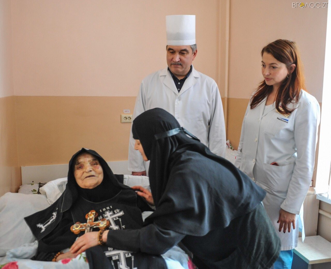 До 107-ліття схимонахині Іоанни, яке відзначатимуть 24 березня, в монастирі вирішили зробити їй подарунок і спробувати відновити втрачений зір. Матушка не бачила вже більше 5 років. Настоятелька обителі Ігуменя Єкатерина звернулась до начальника управління охорони здоров’я Житомирської обласної державної адміністрації Миколи Суслика з проханням допомогти у відновленні зору схимонахині. Порадилися з головним лікарем Житомирської обласної клінічної лікарні ім. О.Ф.Гербачевського Богданом Леськівим. Він запевнив, що у відділенні мікрохірургії ока робили подібні операції і 96-літнім, і 100-літнім жителям. Тому лікарі мають змогу зробити таку операцію.