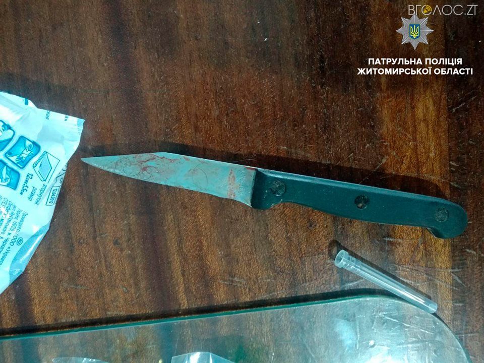 У Житомирі 5 травня поліцейські затримали зловмисника, котрий під час конфлікту наніс двом чоловікам ножові поранення. Про це повідомили на офіційній сторінці патрульної поліції Житомира.