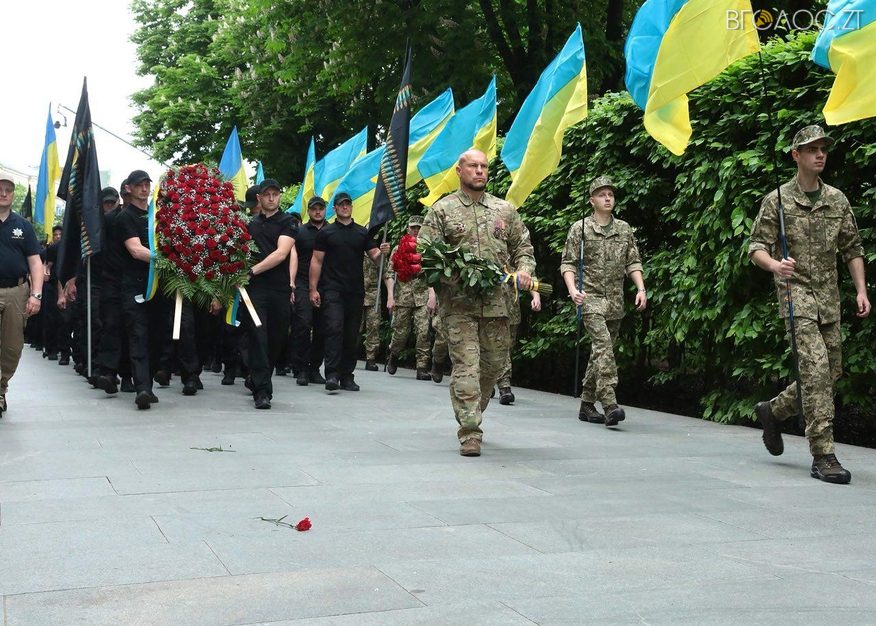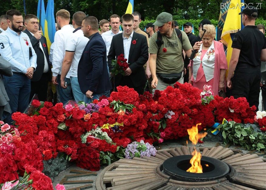 Квіти до вічного вогню біля Монумента Воїна-визволителя поклали понад сто осіб. Серед них — голова СПУ і Всеукраїнської спілки ветеранів АТО Ілля Кива, ветерани АТО, члени Соцпартії.