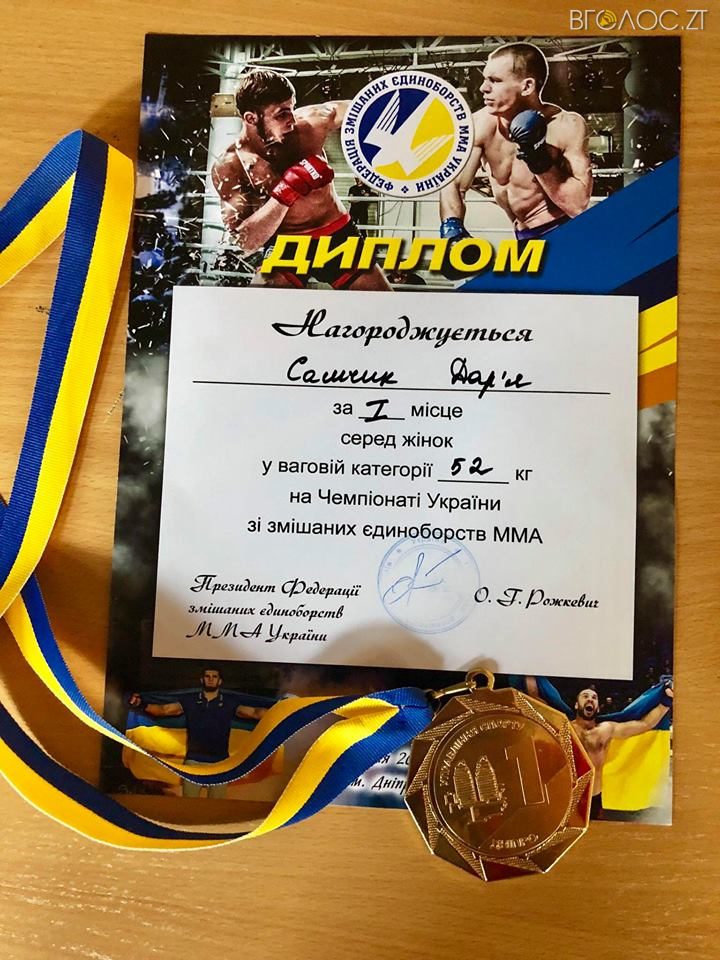 До слова, житомирська спортсменка Дар’я Самчик – володарка Кубку України 2016 року, чемпіонка України 2017 року, чемпіонка Європи – 2017 року зі змішаних єдиноборств ММА.