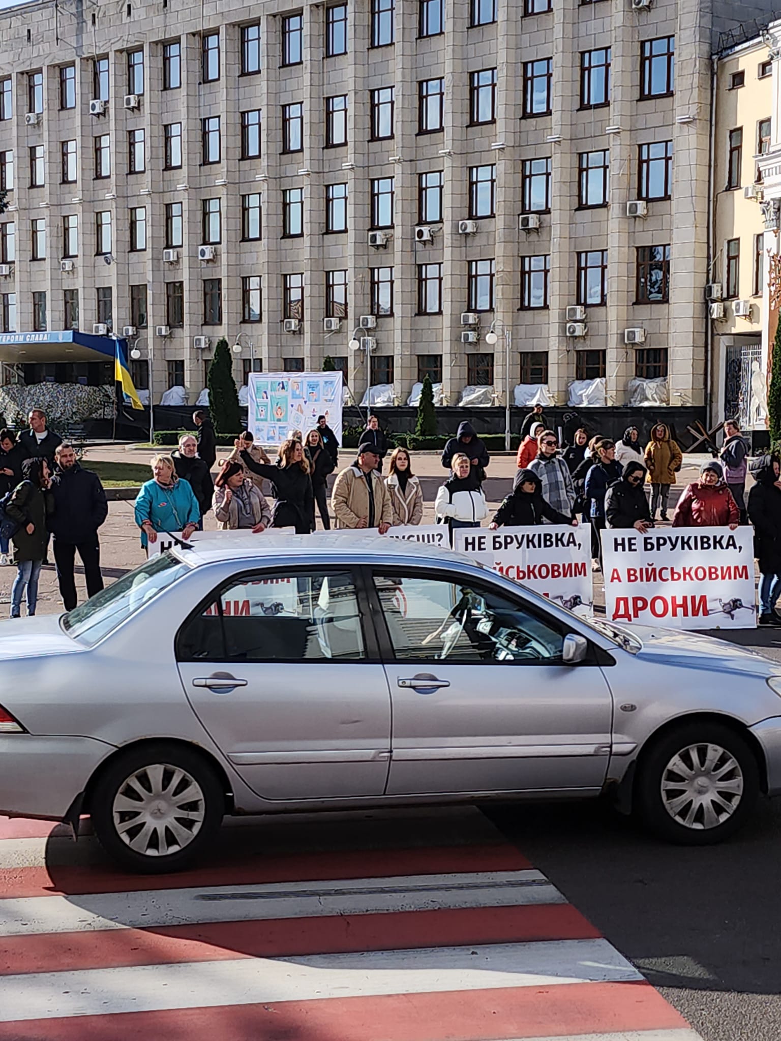 У Житомирі з 9-ї години ранку 16 жовтня на вулиці Великій Бердичівській відбувається акція в підтримку Збройних сил України. Люди закликають місцеву владу відмовитися від будівництва стадіонів та укладання плитки на користь допомоги військовим.