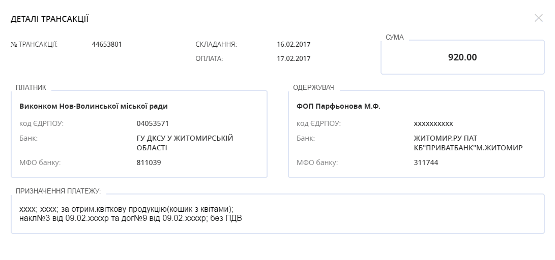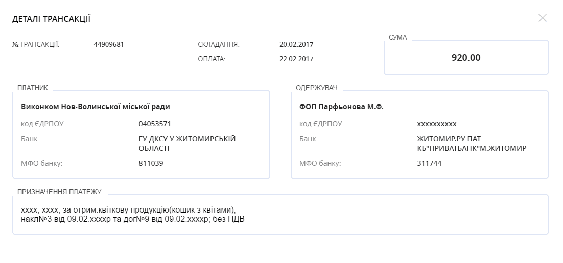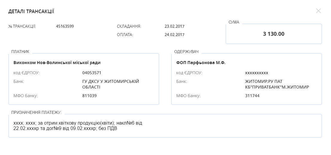 Квіти на суму майже 5 тис. грн купували лише три рази – 17, 22 та 24 лютого. Усі кошти виконком міської ради перерахував ФОП Парфьонова М.Ф.