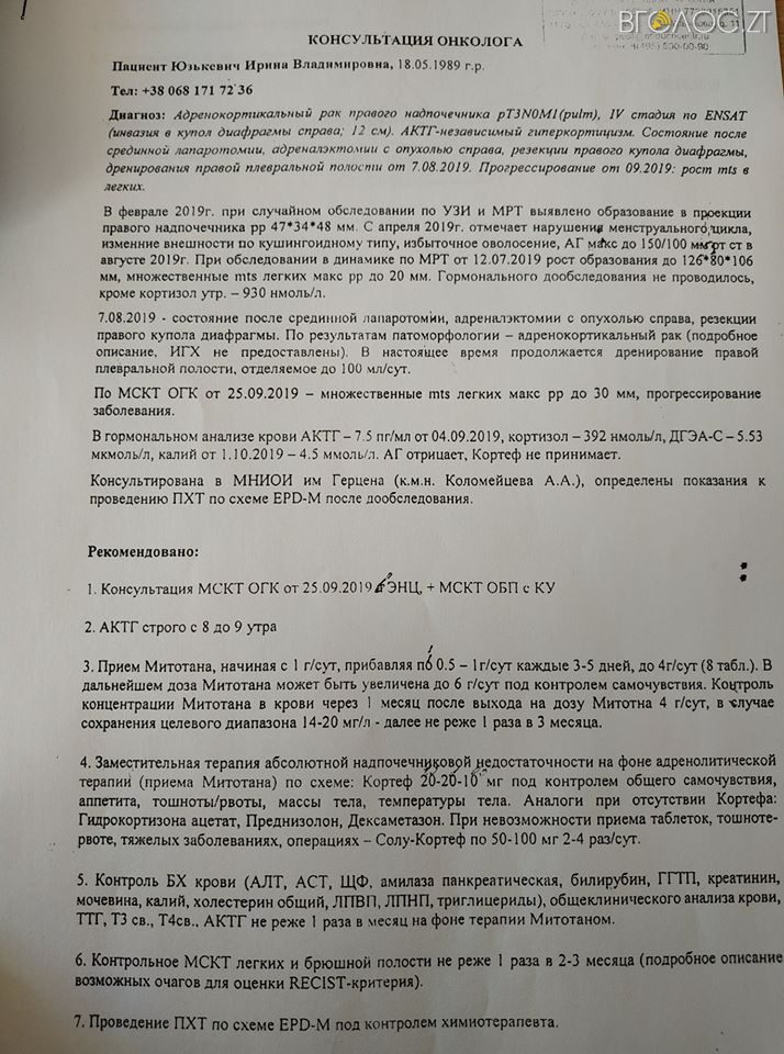 “Дівчині провели операцію в Національному інституті хірургії та трансплантології ім. Шалімова. Зараз вона проходить профілактичну терапію дороговартісним лікарським препаратом “Мітотан” (“Лізодрен”). На місяць вона потребує приблизно 2,5 упаковки цих пігулок (протягом життя Ірі доведеться приймати від 3-х до 20-ти таблеток на добу). На курси хіміотерапії, обстеження, аналізи, ліки були потрачені усі кошти, які мала сім’я, тому я прошу всіх, хто розуміє, наскільки важливе та цінне життя дитини, підтримати мого колегу та його доньку у їхній боротьбі…. Світ не врятує краса – світ врятує лише взаємодопомога, взаєморозуміння та взаємопідтримка”, – написала Сніжана.