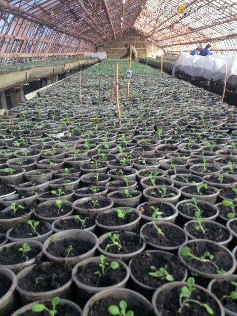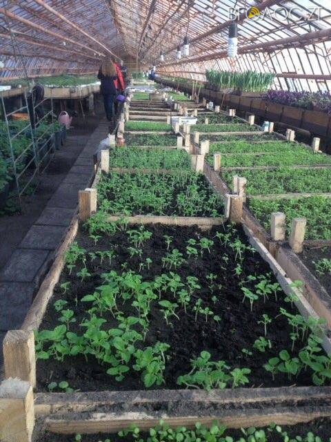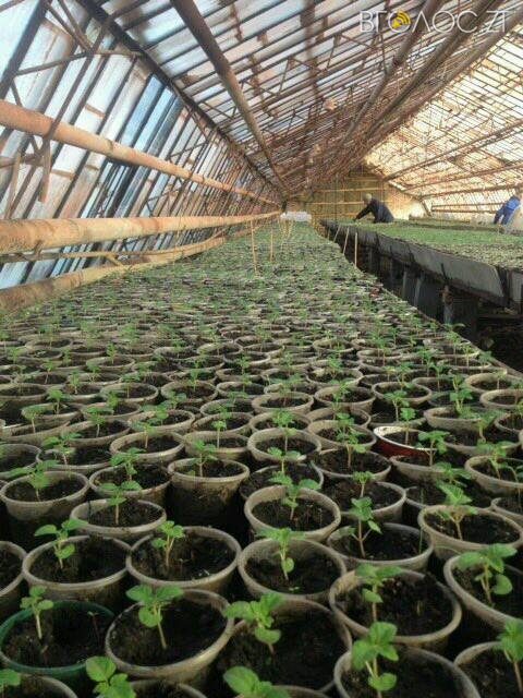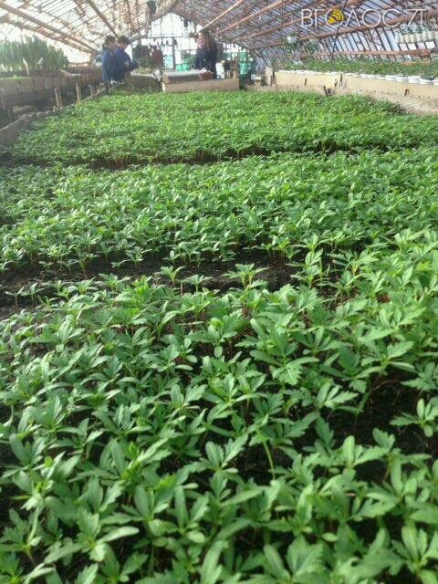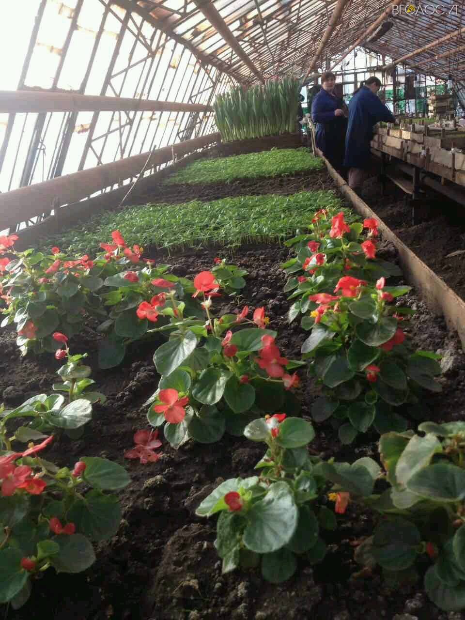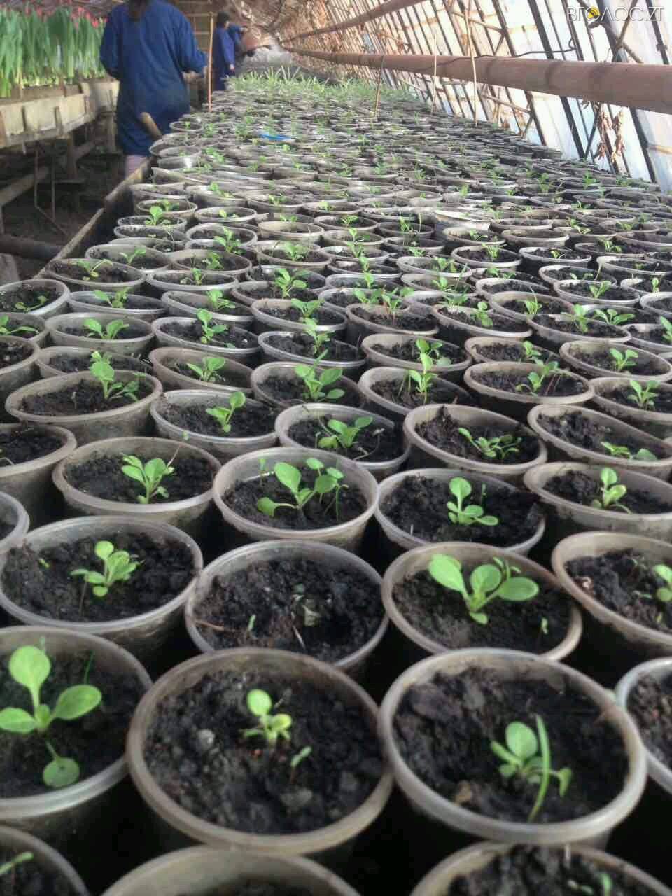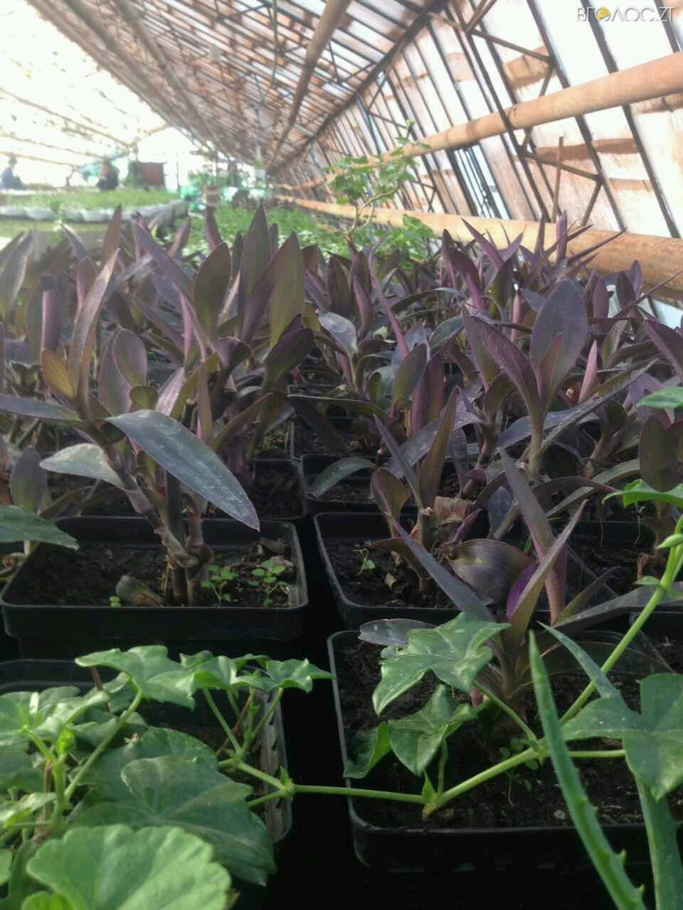 Поруч із тюльпанами й інші квіти чекають свого часу. У теплиці зеленіють тендітні пагінці петуній, сульфіній, пеларгоній, красуються в горщиках бегонії, радують рясними сходами чорнобривці, альтернатера, цинирарія. Власне, зараз над ними чаклують працівники Зеленбуду: пересаджують та пікірують.