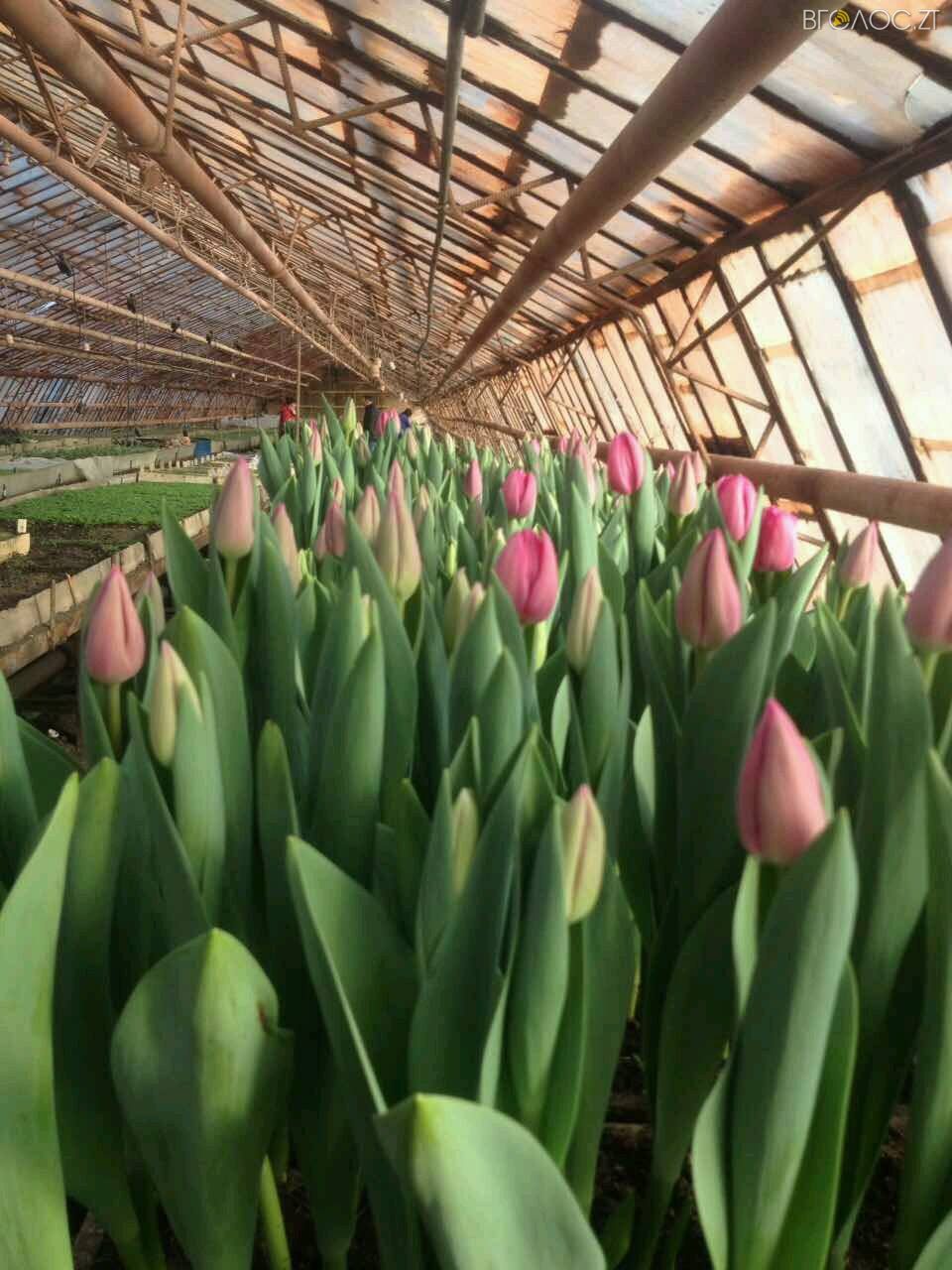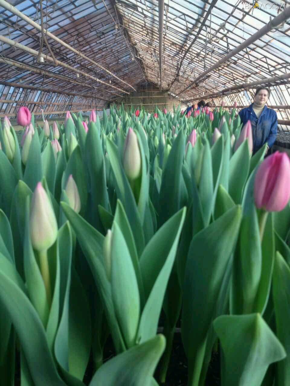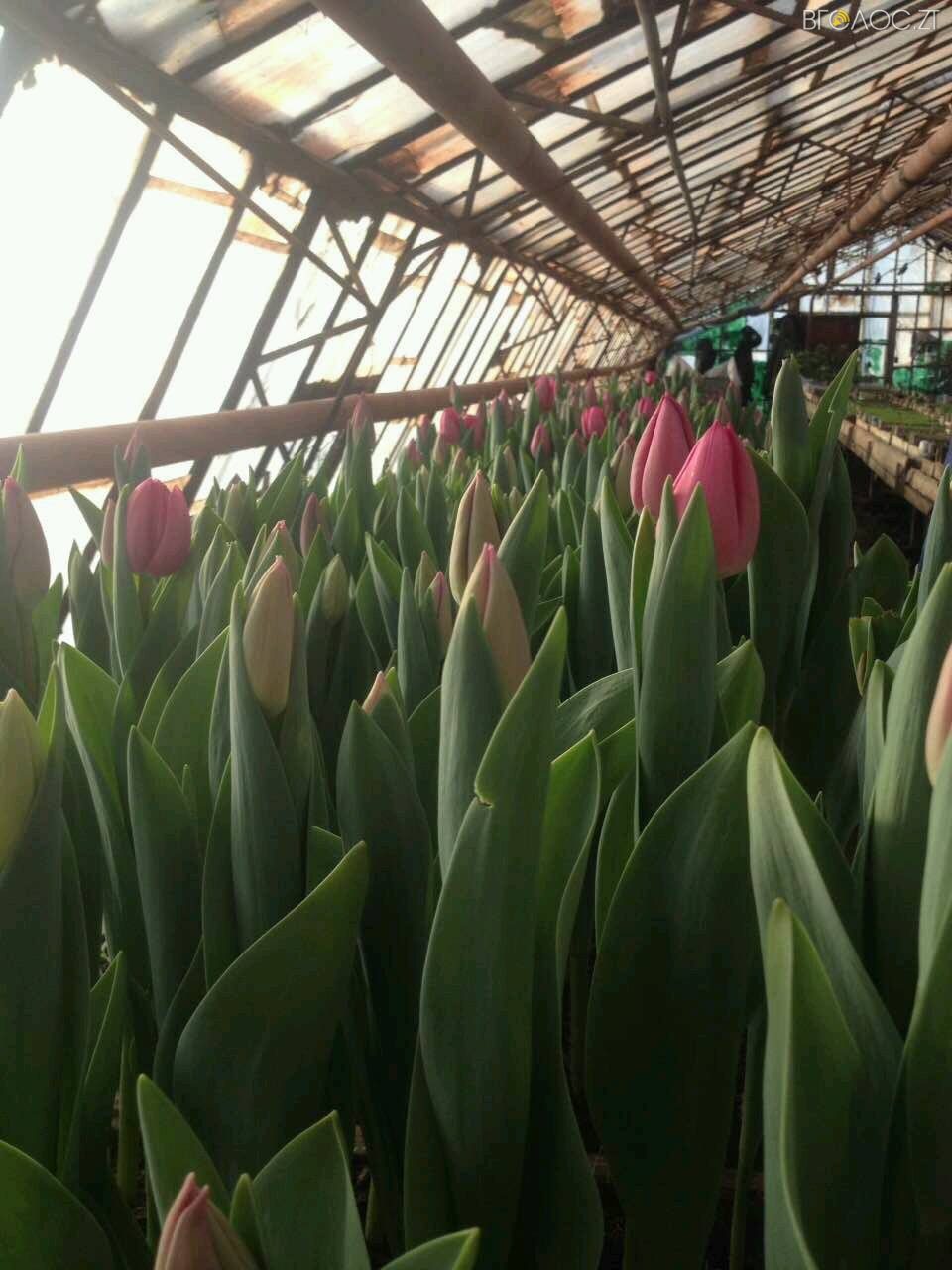 На територію комунального підприємства «Зеленбуд» весна прийшла раніше. У теплицях підприємства вже кілька днів поспіль квітнуть тюльпани.
