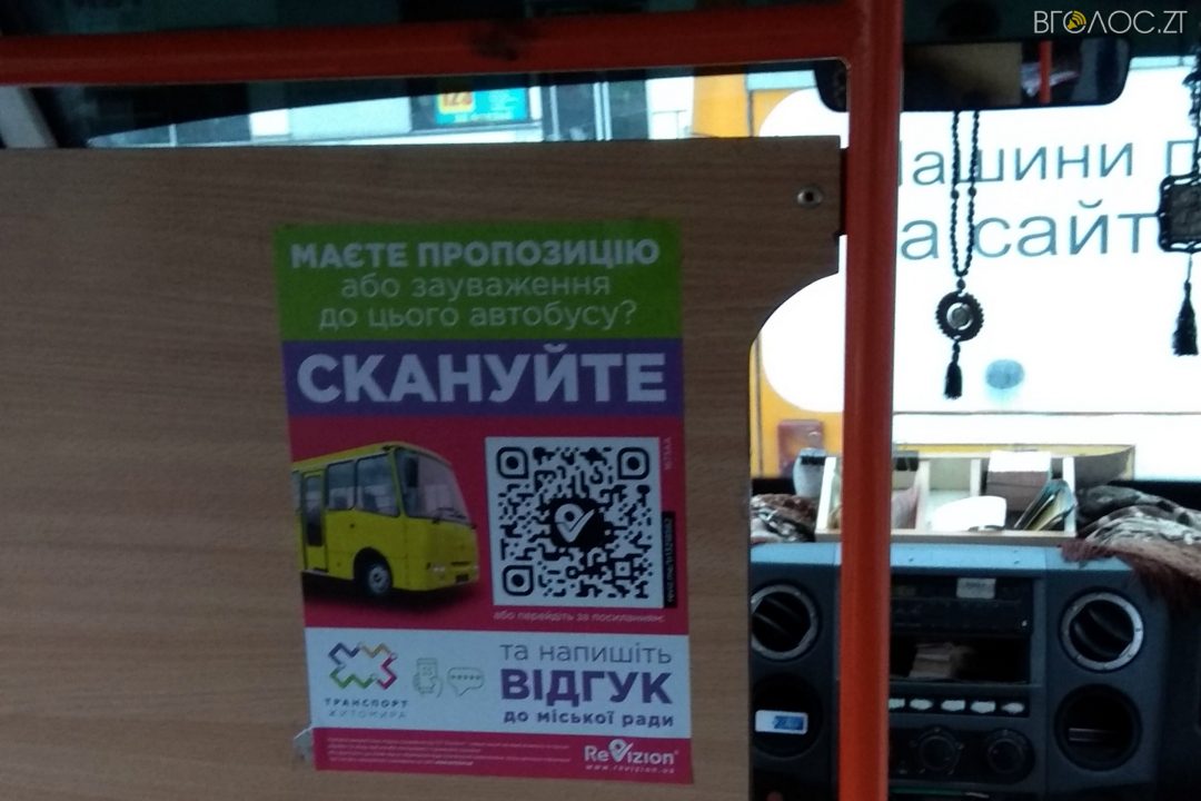 У маршрутних таксі Житомира з’явились наліпки з QR-кодом. Відсканувавши його смартфоном пасажири можуть залишити відгук про свою поїздку у кожному конкретному автобусі. Про це повідомила прес-служба міської ради.