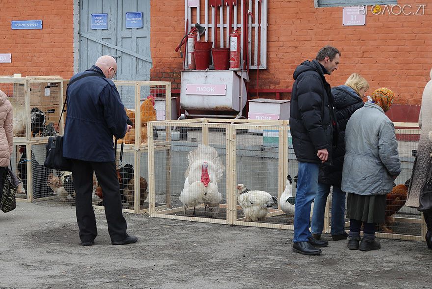 На території технологічного факультету Житомирського національного агроекологічного університету 12 березня вперше відбулася виставка-ярмарок птаховодів і твариноводів. Представники одноосібних господарств області могли не лише представити різні породи курей, голубів, гусей, індиків і кролів, яких виростили самі, а й продати їх.