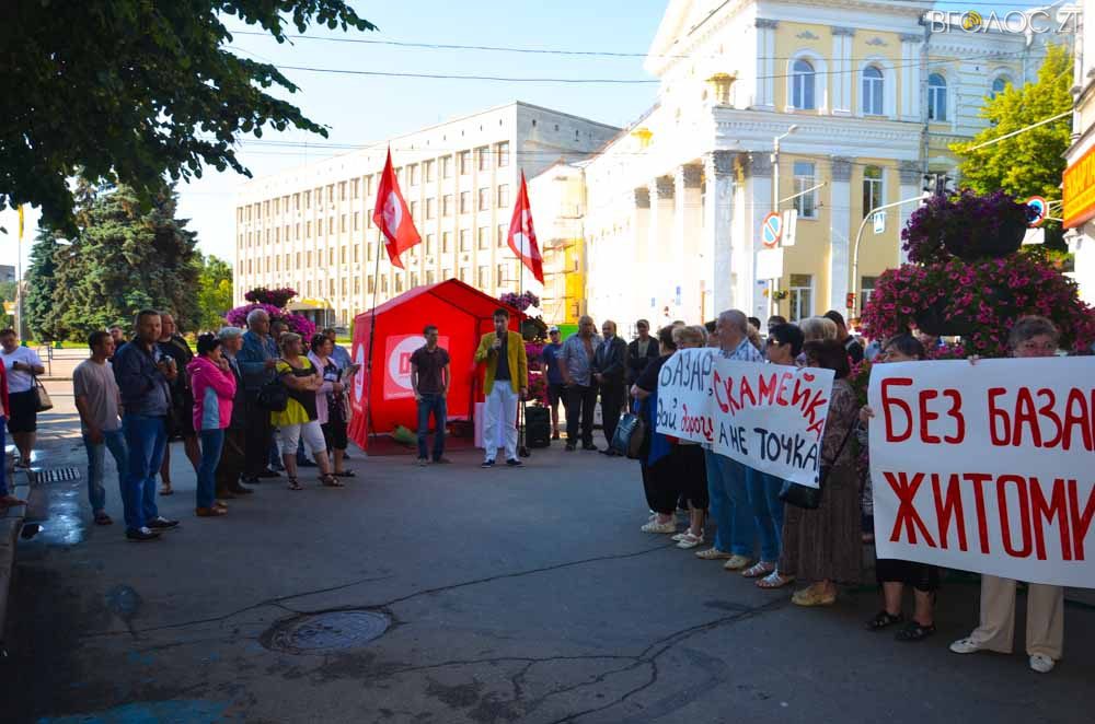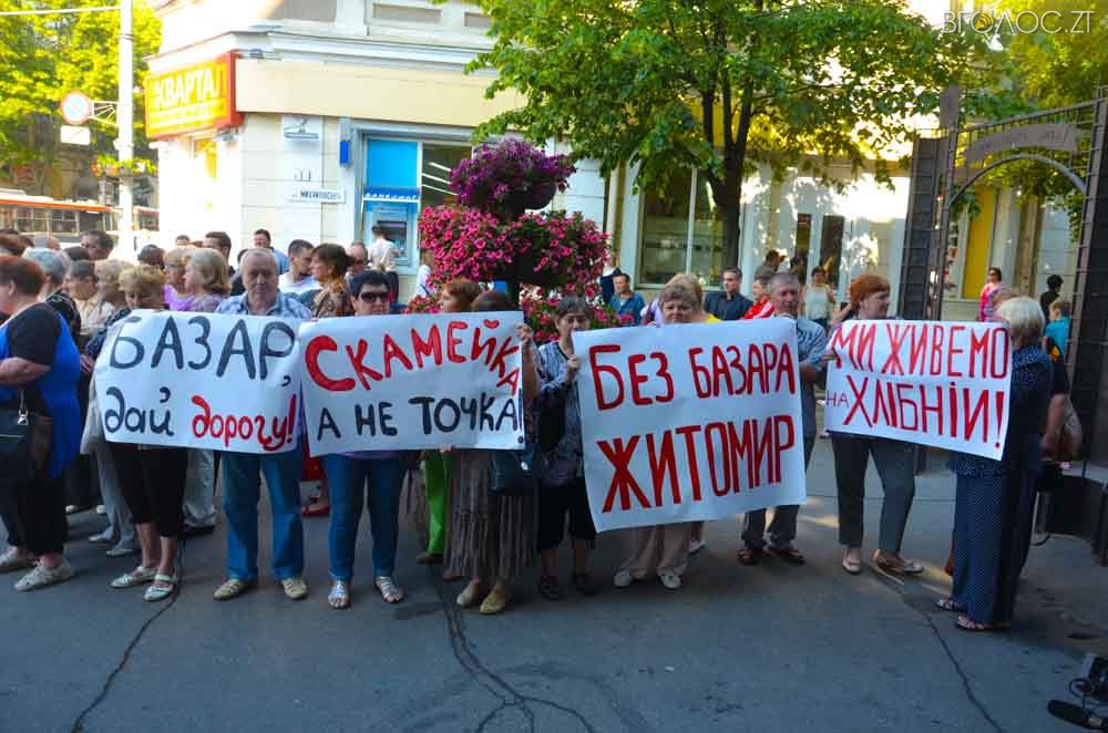 Перед початком сесії Житомирської міської ради 16 червня підприємці, обурені діями КП «Інспекція з благоустрою», яке заборонило їм торгувати з землі перед ринком, вийшли під стіни мерії. Разом із ними вийшли також житомиряни, які підтримують дану ініціативу.
