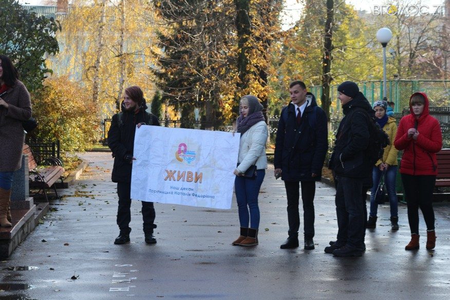 «Вчорашній мітинг нічого не дав. Єдине – ми змогли поговорити з новопризначеним деканом Наталією Дубравською. Але у всьому цьому дуже багато неясностей. Нам сказали, що ректор нічого не вирішує у цьому питанні. Одні кажуть, що документи підписані, інші – що ні. Сьогодні ми зібралися, аби розіграти невелике дійство, про те, що ректор не прислухається до думки студентів. Далі підемо під його кабінет і сидітимемо там», – розповів голова студентського братства соціально-психологічного факультету Павло Седляр.