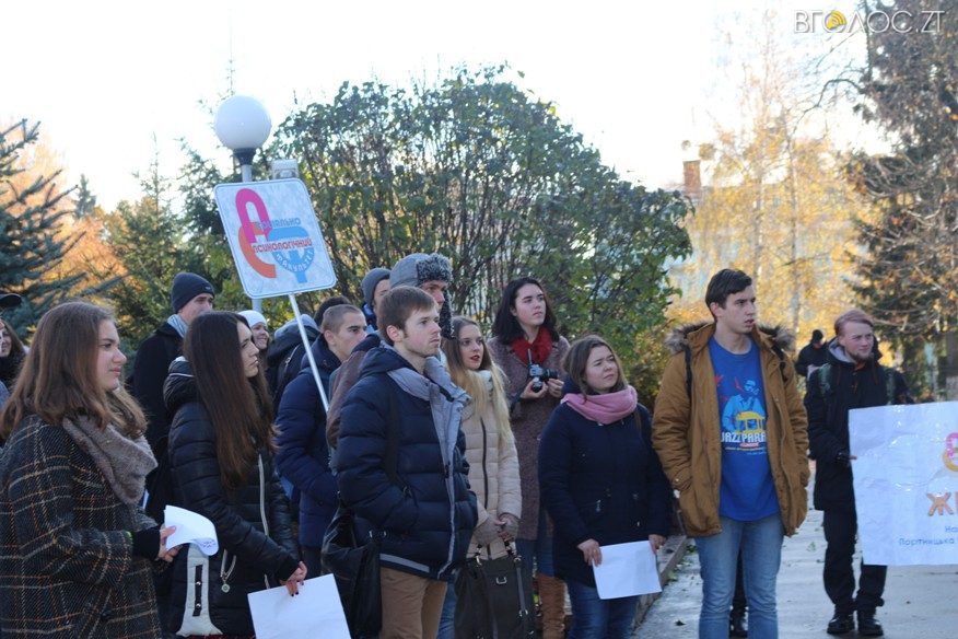 Близько півсотні студентів соціально-психологічного факультету Житомирського державного університету ім. І. Франка 3 листопада вдруге зібралися біля центрального корпусу, щоб висловити свій протест проти свавілля у кадровій політиці вузу. Не дивлячись на те, що рада факультету та кадрова комісія на посаду декана факультету підтримали кадидатуру, обрану студентами, ректор призначив іншу особу. Подібну акцію студенти провели й напередодні.