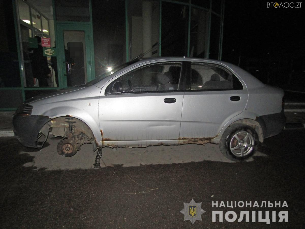Поліцейські дійсно застали за вказаною адресою автомобіль з пошкодженим колесом і двох молодих людей, 18-річного жителя Баранівського району та 19-річного черкащанина, (третього, 16-річного жителя Лугинського району, розшукали згодом на залізничній станції).