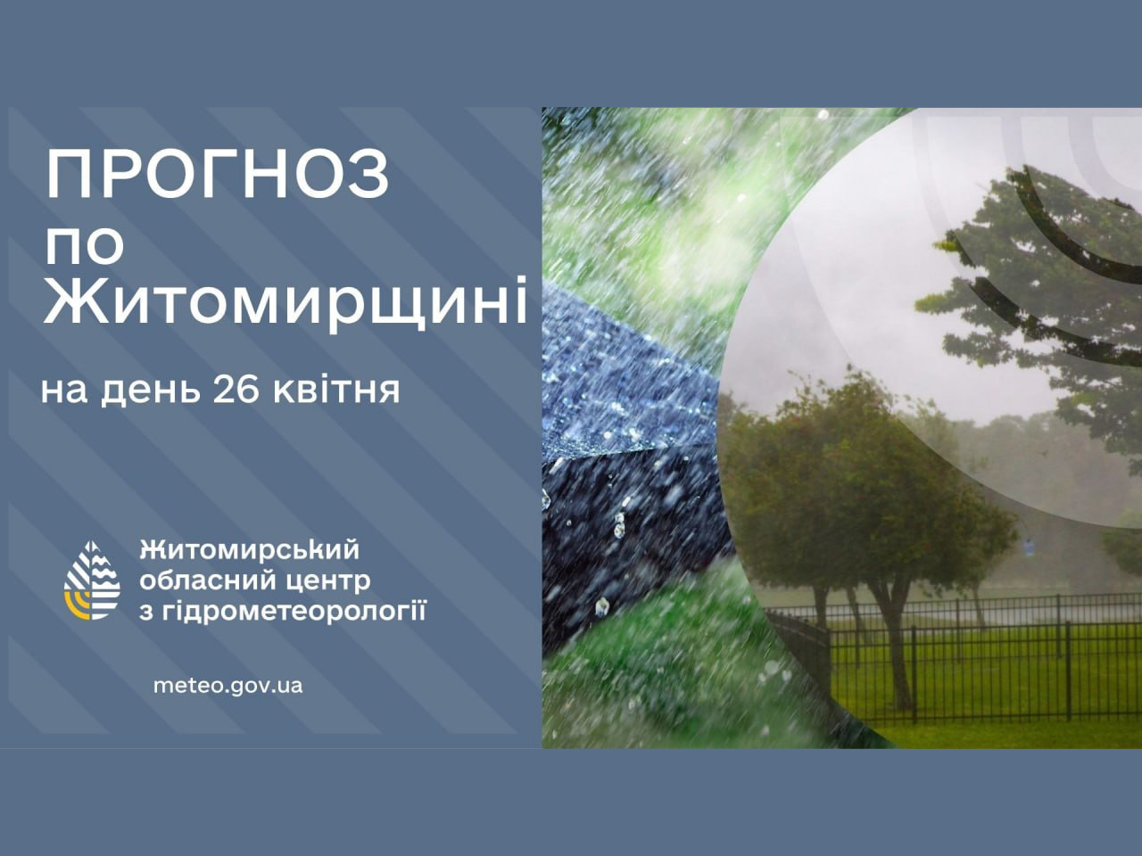 Хмарно з проясненнями.  Короткочасний дощ. Місцями гроза.                                                                                                                                         Вітер північно-західний, 7-12 м/с, пориви 15-20 м/с.                                                                                                                                                                  Температура по області 7..12°,  у Житомирі  10..12°.