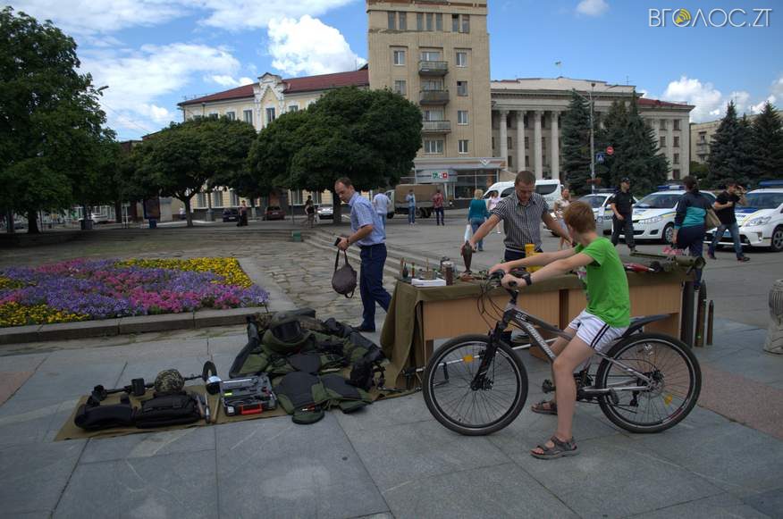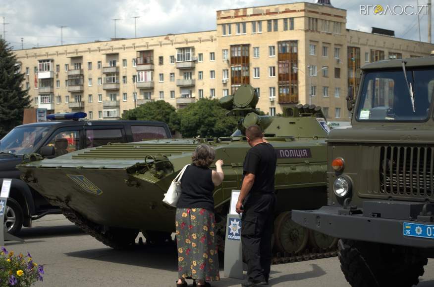 З нагоди річниці від дня створення поліції 3 серпня у центрі Житомира відкрилася унікальна виставка. Городянам та гостям міста продемонстрували матеріально-технічну базу підрозділів національної поліції. Відвідувачі змогли потримати в руках зброю, приміряти бронежилет або сфотографуватися біля техніки.