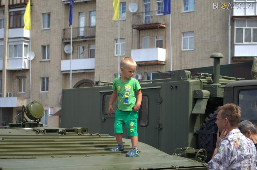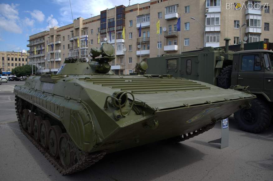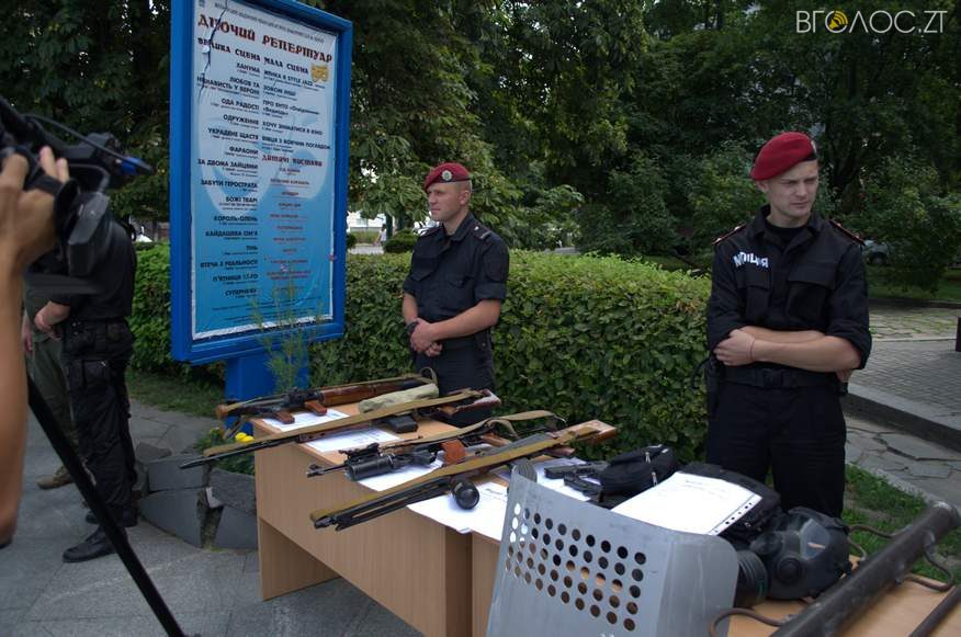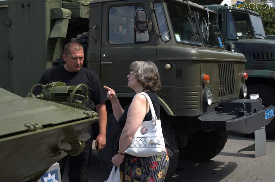 Працівники поліції розповіли присутнім про свої «експонати». Серед них ручний протитанковий гранатомет, призначений для ураження бронетехніки противника. Його вага становить 4,5 кг. Снайперська гвинтівка Драгунова, бронежилети. Із автотехніки були представлені вже всім знайомі патрульні автомобілі, а також БМП-1, які використовувалися для оточення території при затриманні бурштиношукачів.