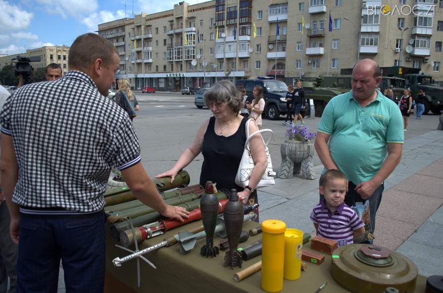 Вибухотехнічна служба показала предмети та вибухові пристрої, які їм доводиться вилучати із незаконного обігу: макети різних вибухових пристроїв промислового виготовлення, протипіхотні та протитанкові міни, різноманітні артилерійські снаряди, реактивні системи, які використовувалися злочинцями та терористичними організаціями на території області.