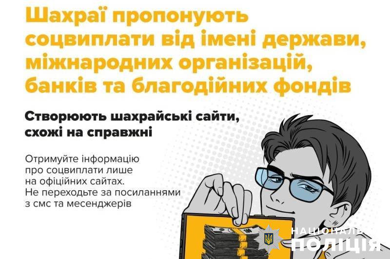 Повідомлення із текстом «організація допомагає усім українцям… Потрібно лише зареєструватися на сайті…» надходять у соціальних мережах та месенджерах. Наївні українці переходять за посиланням і в такий спосіб шахраї несанкціоновано отримують доступ до їхніх акаунтів. Зазвичай, кажуть правоохоронці, сповіщення про надання допомоги надходять від рідних, близьких та друзів і здаються такими, які не потребують перевірки.