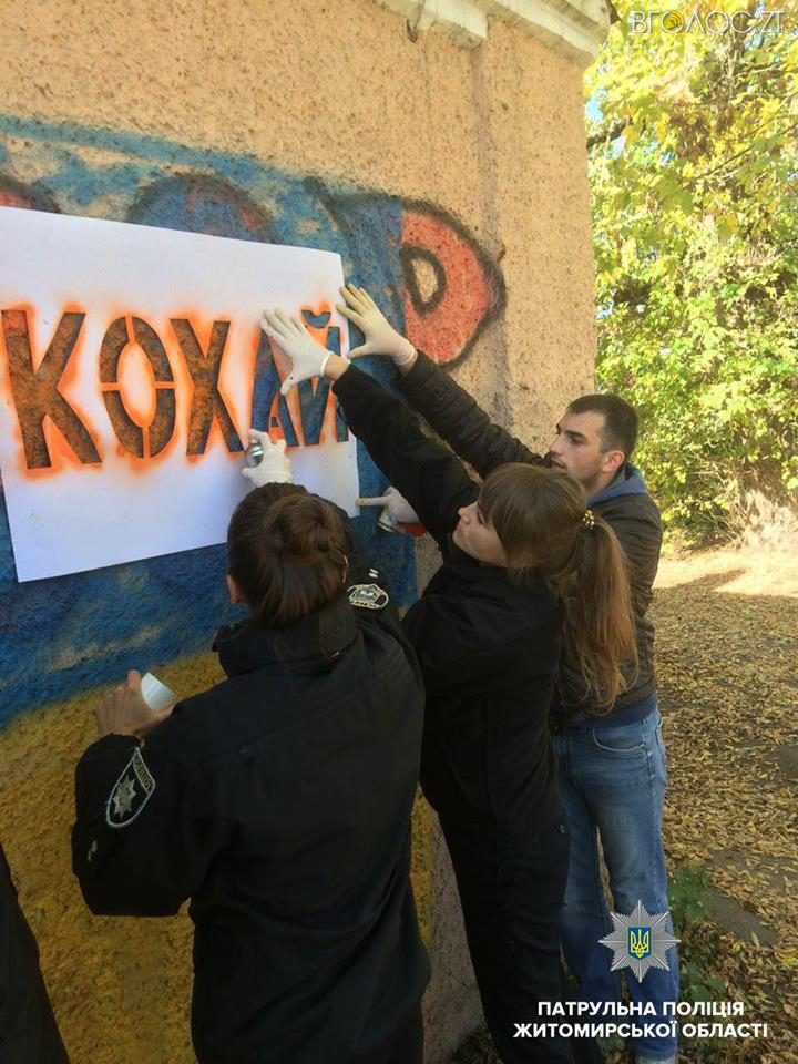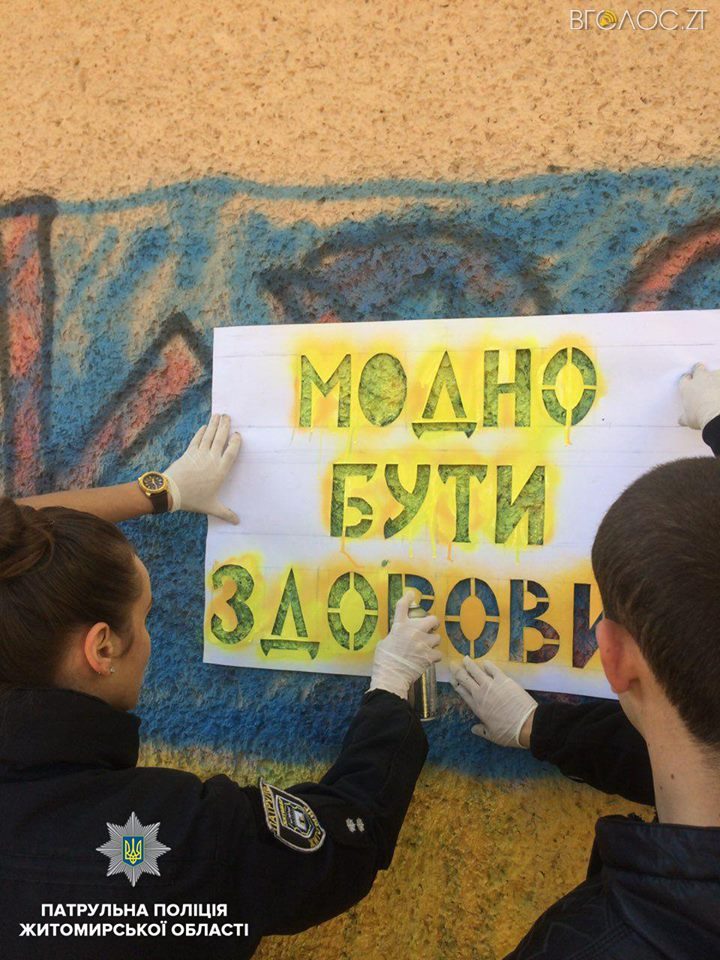 «Працівники патрульної поліції долучилися до всеукраїнської акції «Намалюй життя в любові- Україна», метою заходу є – зафарбування нарко реклам, які великою кількістю розміщуються на житлових будинках та прибудинкових спорудах наших міст. Правоохоронці спільно з управлінням молоді та спорту та небайдужими громадянами замалювали близько 30 споруд з рекламою наркотичних речовин. Заохочуємо житомирян приєднуватись до акції, оскільки подібні заходи будуть проводитись неодноразово», – йдеться у повідомленні.