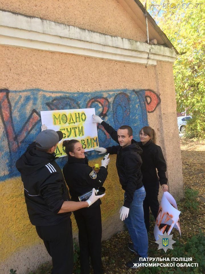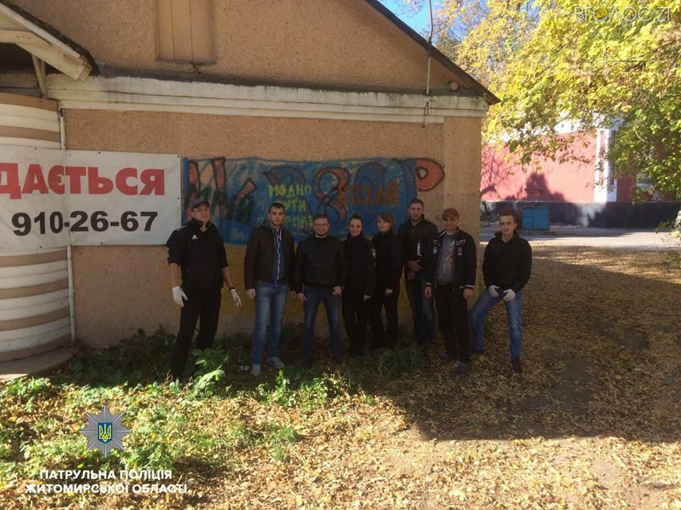 Працівники патрульної поліції 22 жовтня зафарбування наркотичну рекламу на житлових будинках та прибудинкових спорудах Житомира. Про це повідомили на офіційній сторінці у Facebook Патрульної поліції Житомирської області.