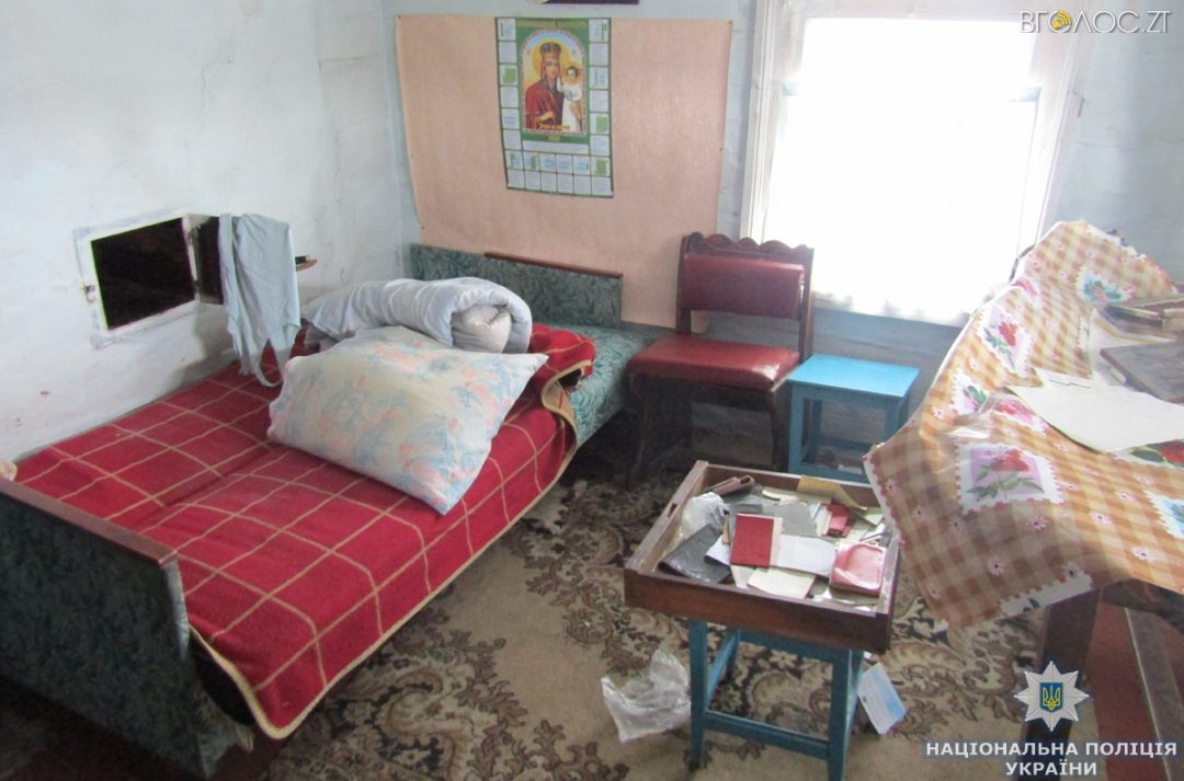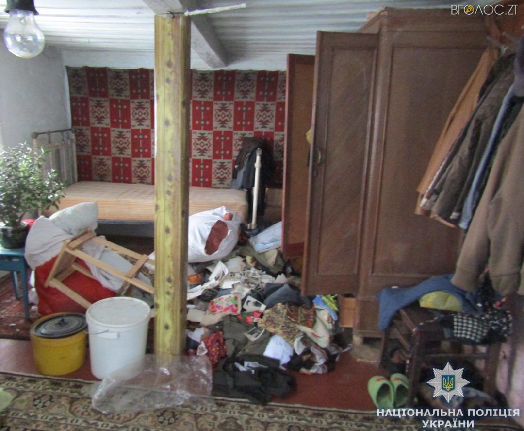 “Вся обстановка в оселі загиблої вказувала на те, що хтось увірвався до будинку: пошкоджені вхідні двері, усередині перевернуті побутові предмети і речі, а сама літня господиня зв’язана мотузкою. З будинку зникли грошові заощадження в сумі майже 8 тисяч гривень та інші бабусині речі”, – розповів начальник ГУНП В’ячеслав Печененко.