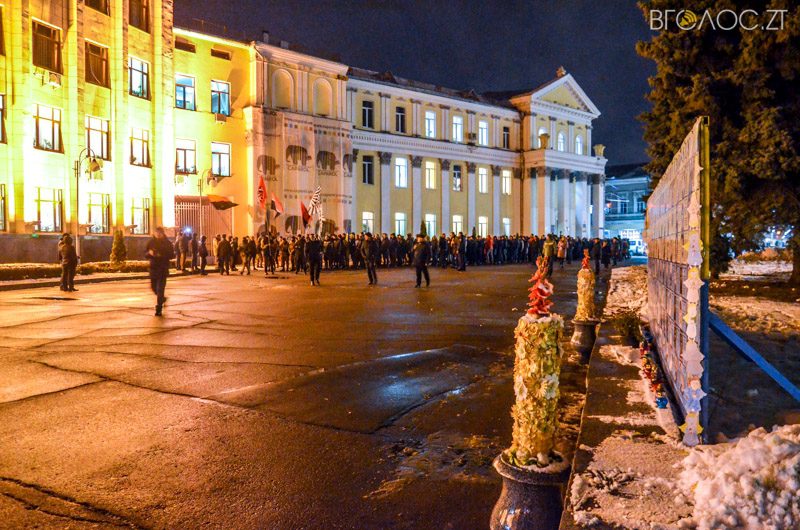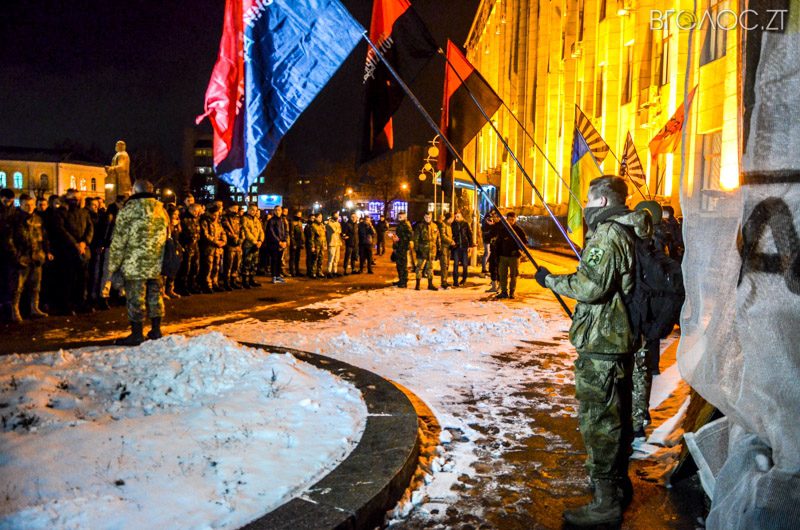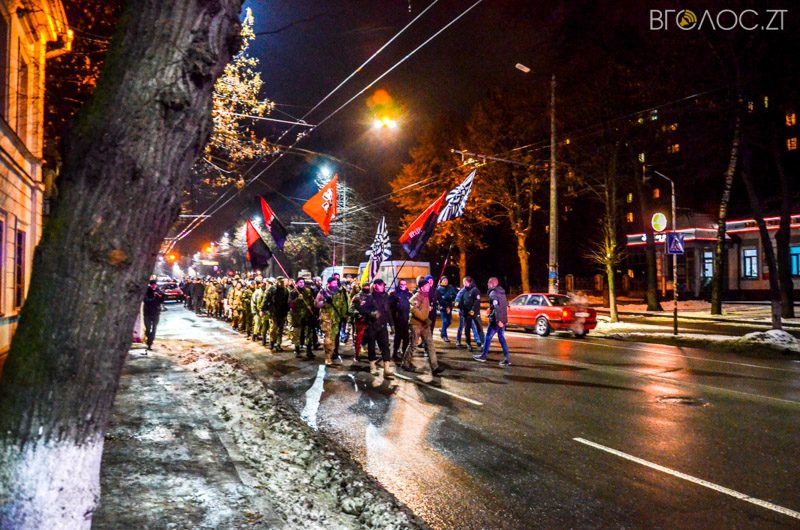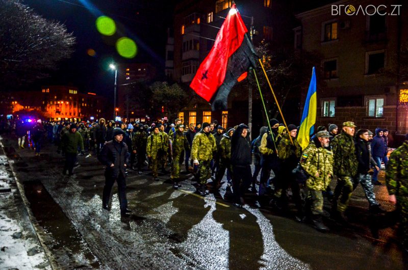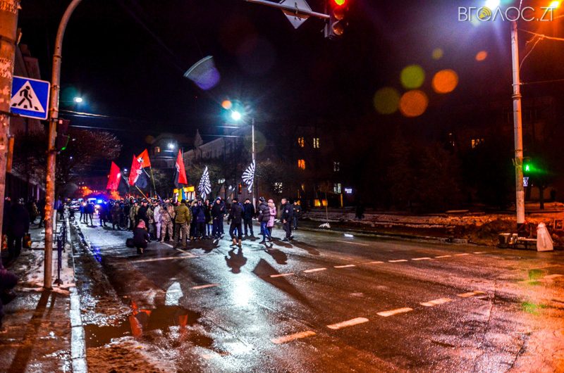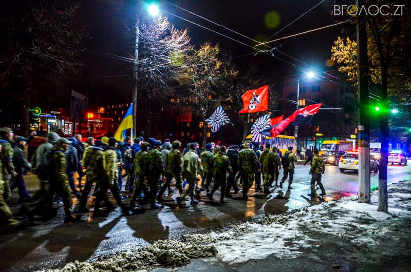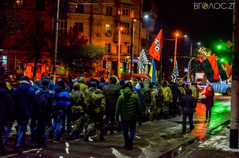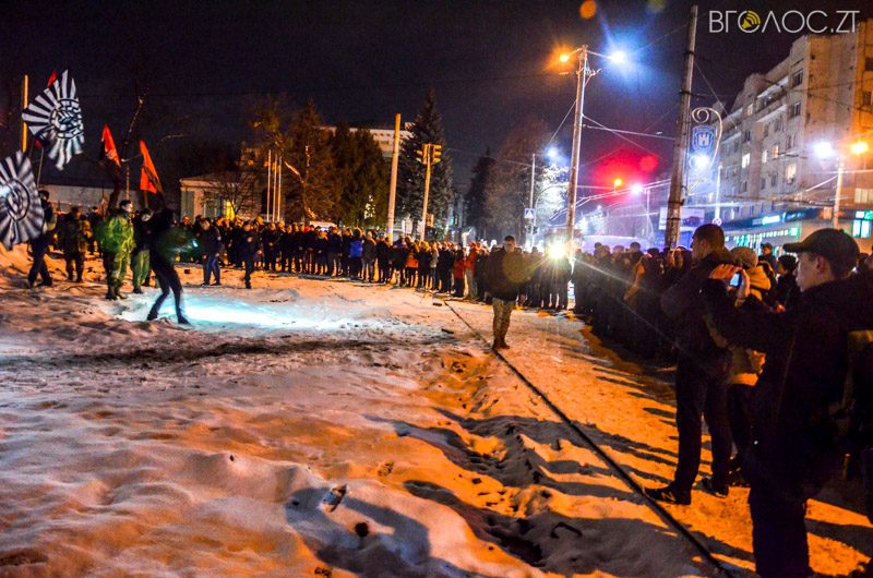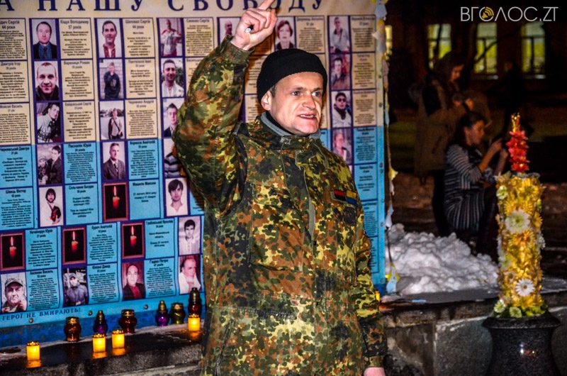 “Сьогодні зібралося більшість житомирських націоналістичних організацій, які спільно вирішили згадати початок силових протистоянь на Майдані, а також вшанувати загиблих героїв. Маю зауважити, що влада залишилася сидіти в своїх кабінетах, хоча не важко було вийти і долучитися до маршу Гідності. Виходить тих людей, які привели їх до влади, вони не підтримують”, – розповів співорганізатор заходу Андрій Горбачук.