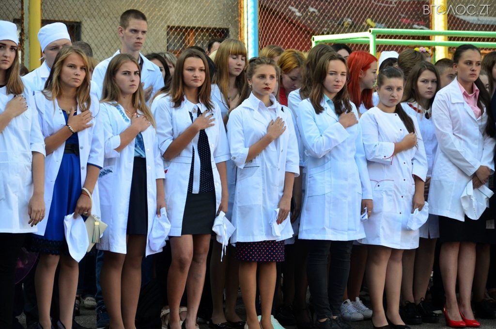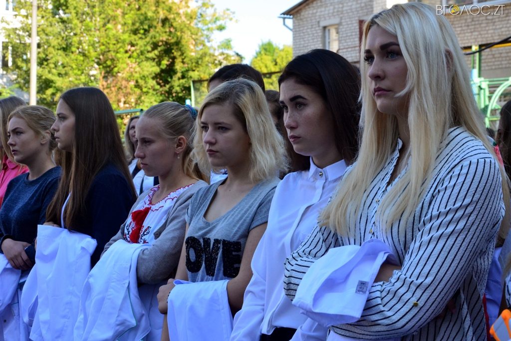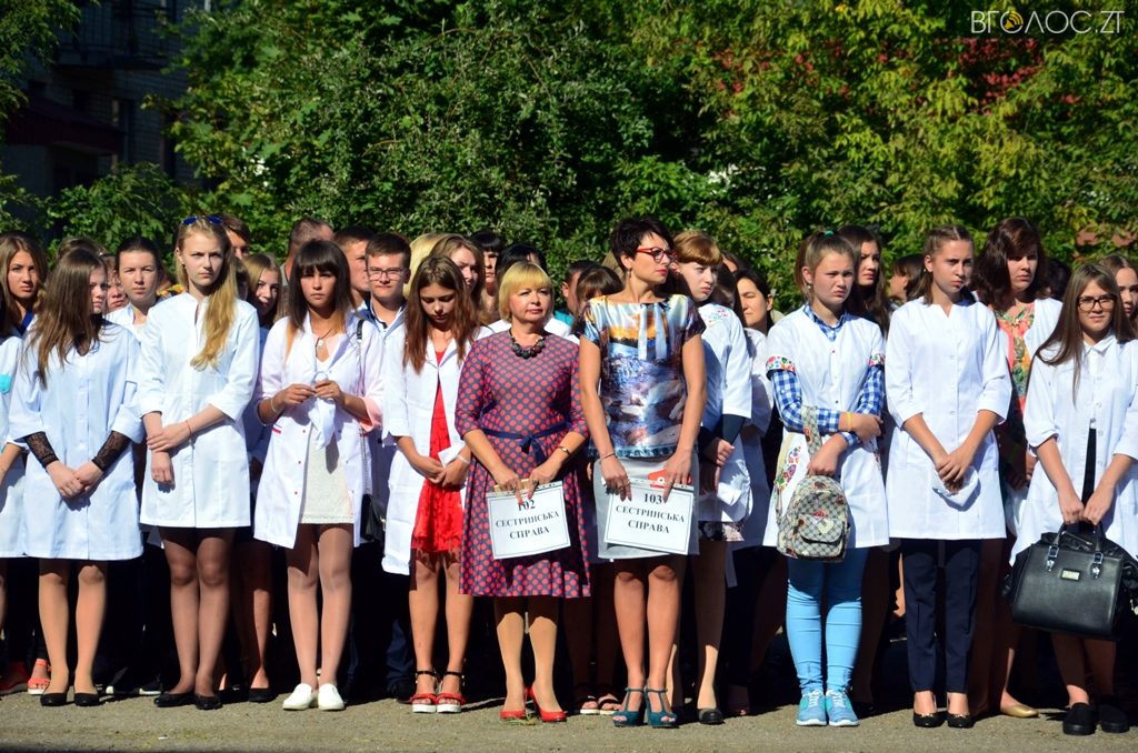 Студенти-першокурсники Житомирського інституту медсестринства 1 вересня відзначили свято «Першого дзвоника». Цього навчального року заклад прийняв юнаків та дівчат на факультети: лікувальна, сестринська та акушерська справи, а також відділення ортопедичної стоматології та зубної гігієни.