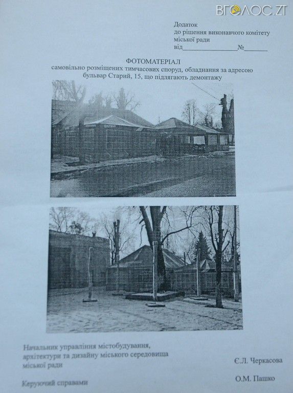 На позачерговому засіданні виконавчого комітета міської ради 19 лютого дванадцятьма голосами вирішили дати припис на демонтаж МАФа по вулиці Старий Бульвар, 15.