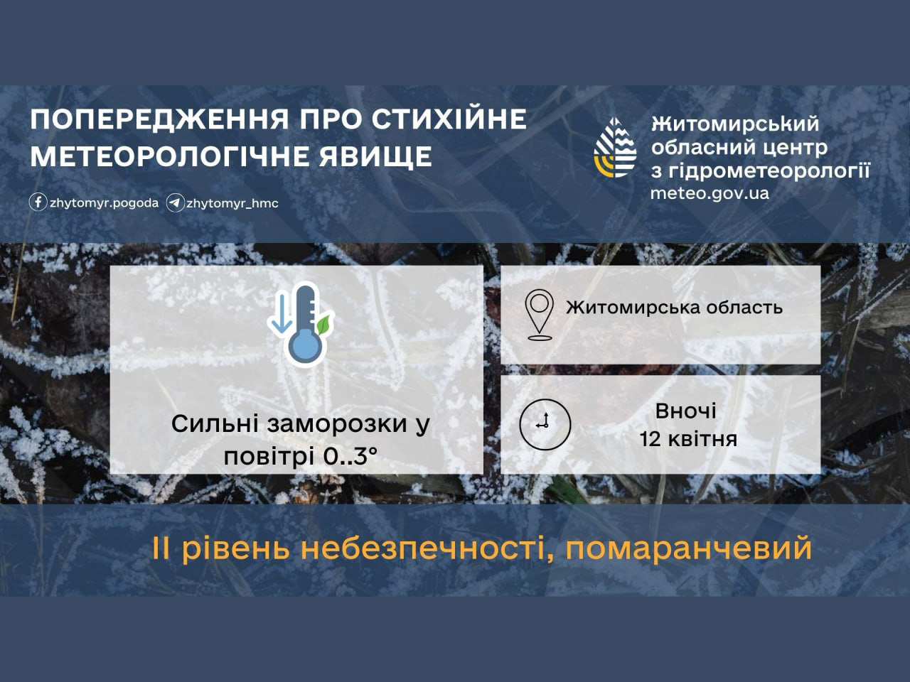 Попередження про стихійне  метеорологічне явище ІІ  рівня небезпечності (СМЯ ІІ) по Житомирській області