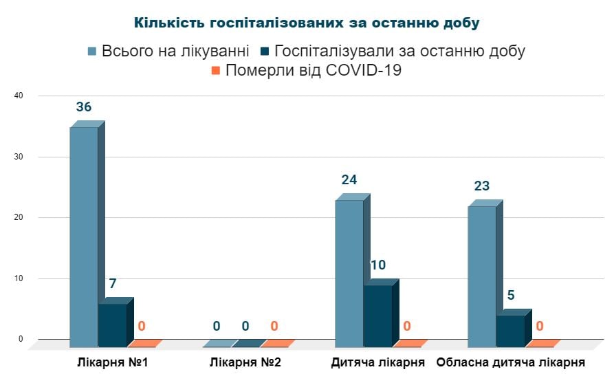 Із 22 госпіталізованих до стаціонарів хворих на COVID-19 15 дітей. 10 із них направлені до міської дитячої лікарні, 5 ‒ до обласної дитячої лікарні. Що стосується дорослих, то всі 7 нових пацієнтів перебувають у центральній міській лікарні №1 Житомира. Загалом у медичних закладах міста та області знаходиться 83 хворих на коронавірус житомирян.