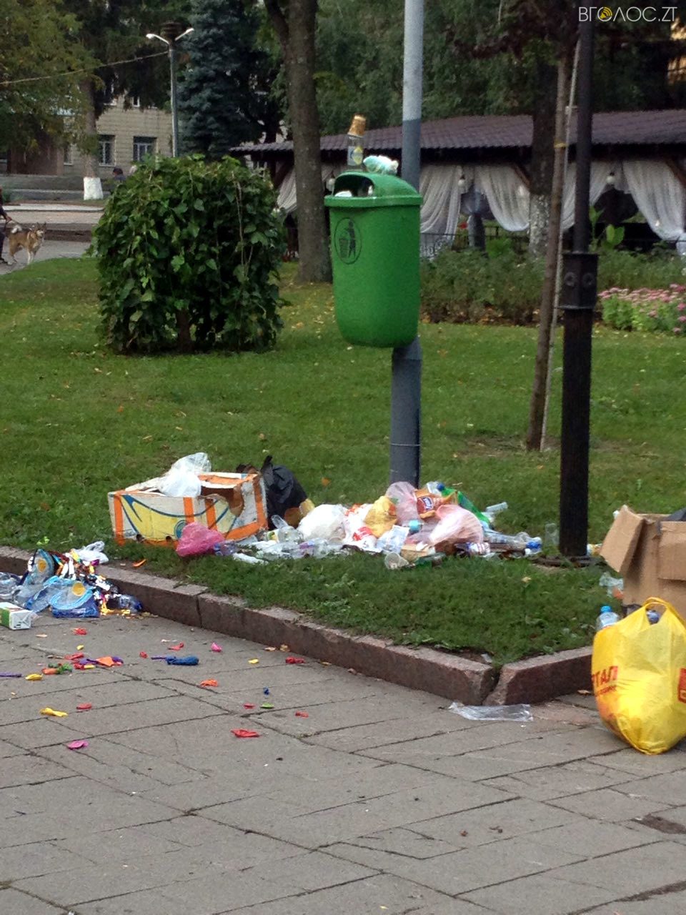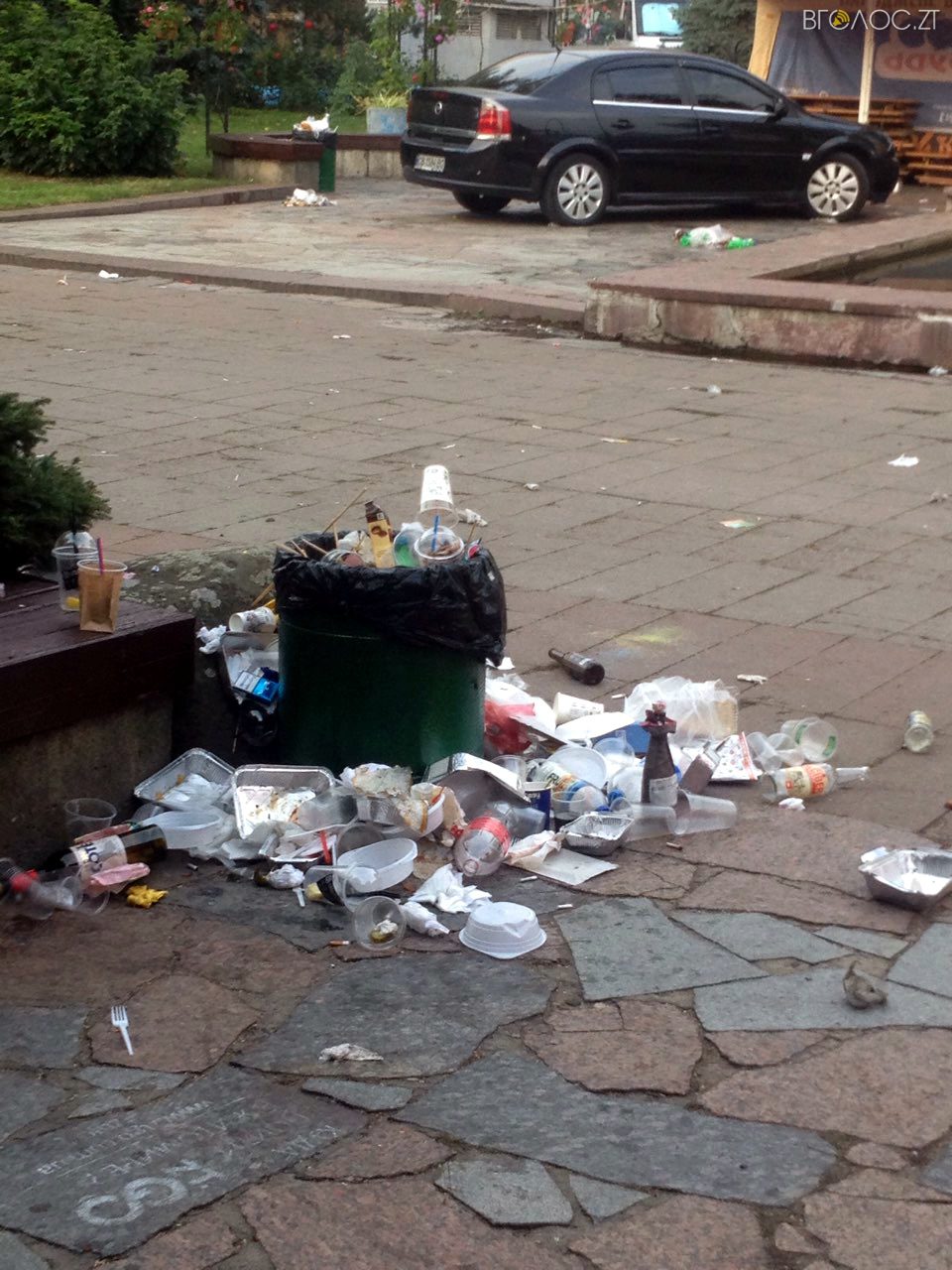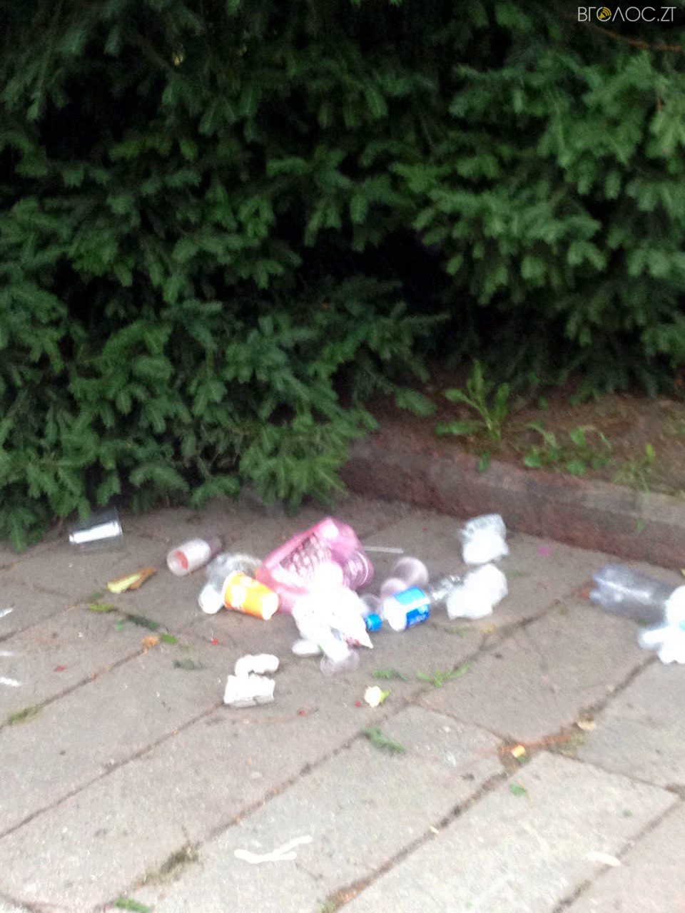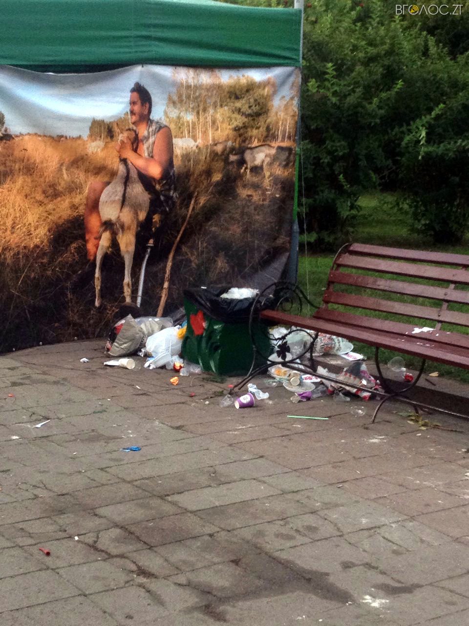 Другий день у Житомирі тривають заходи з нагоди Дня міста. Городяни та гості міста відпочивають, слухають концерти і… смітять. Зранку, 10 вересня, центр міста потопає у пляшках, пакетах, недопалках, обгортках та іншому смітті.